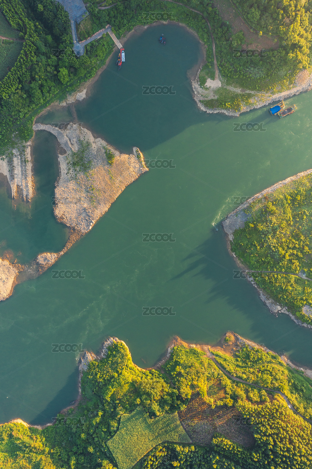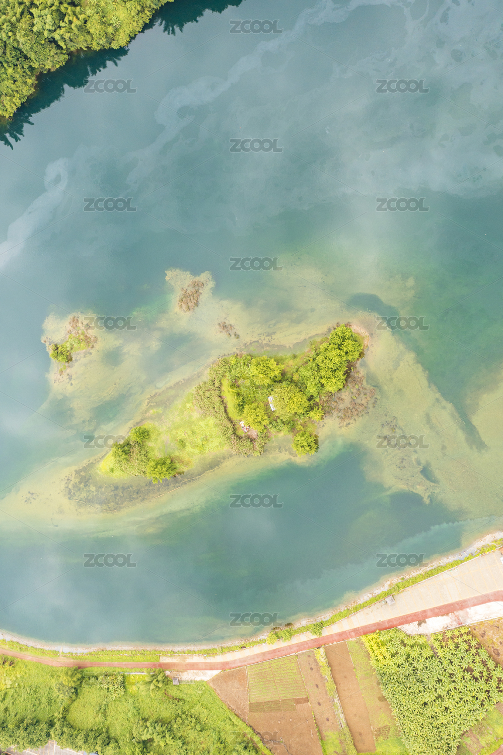 航拍中国安徽宣城郎溪县龙须湖鸟岛