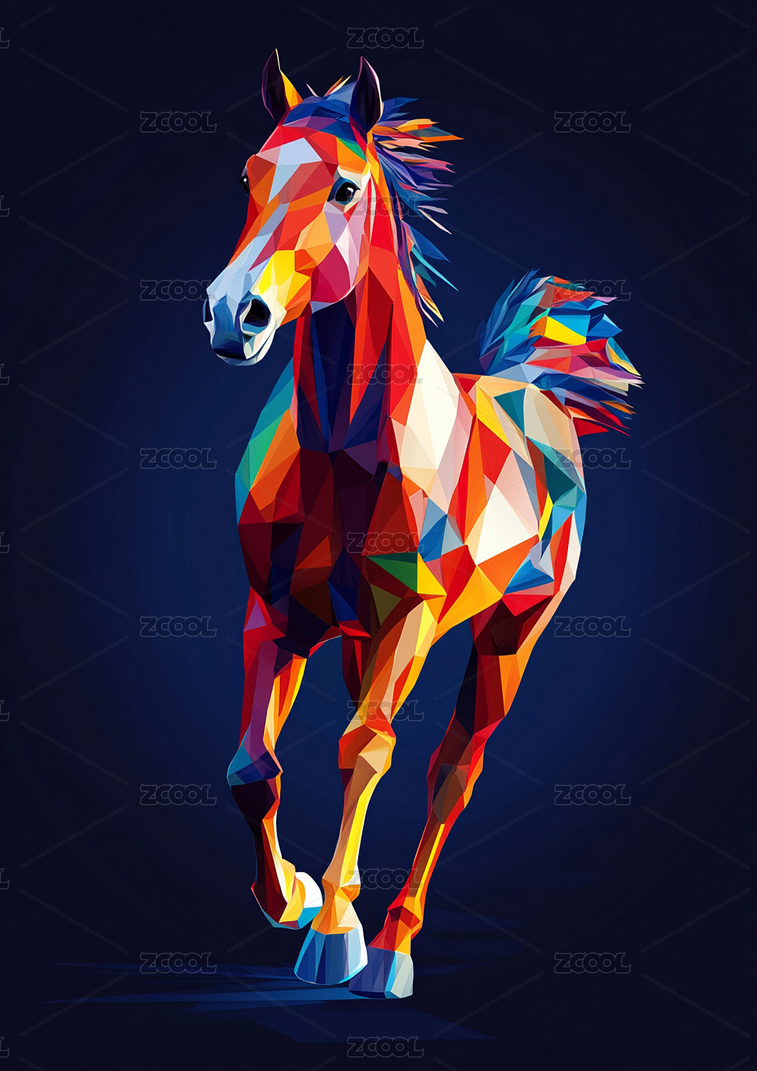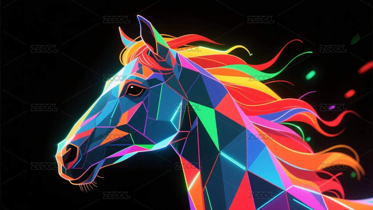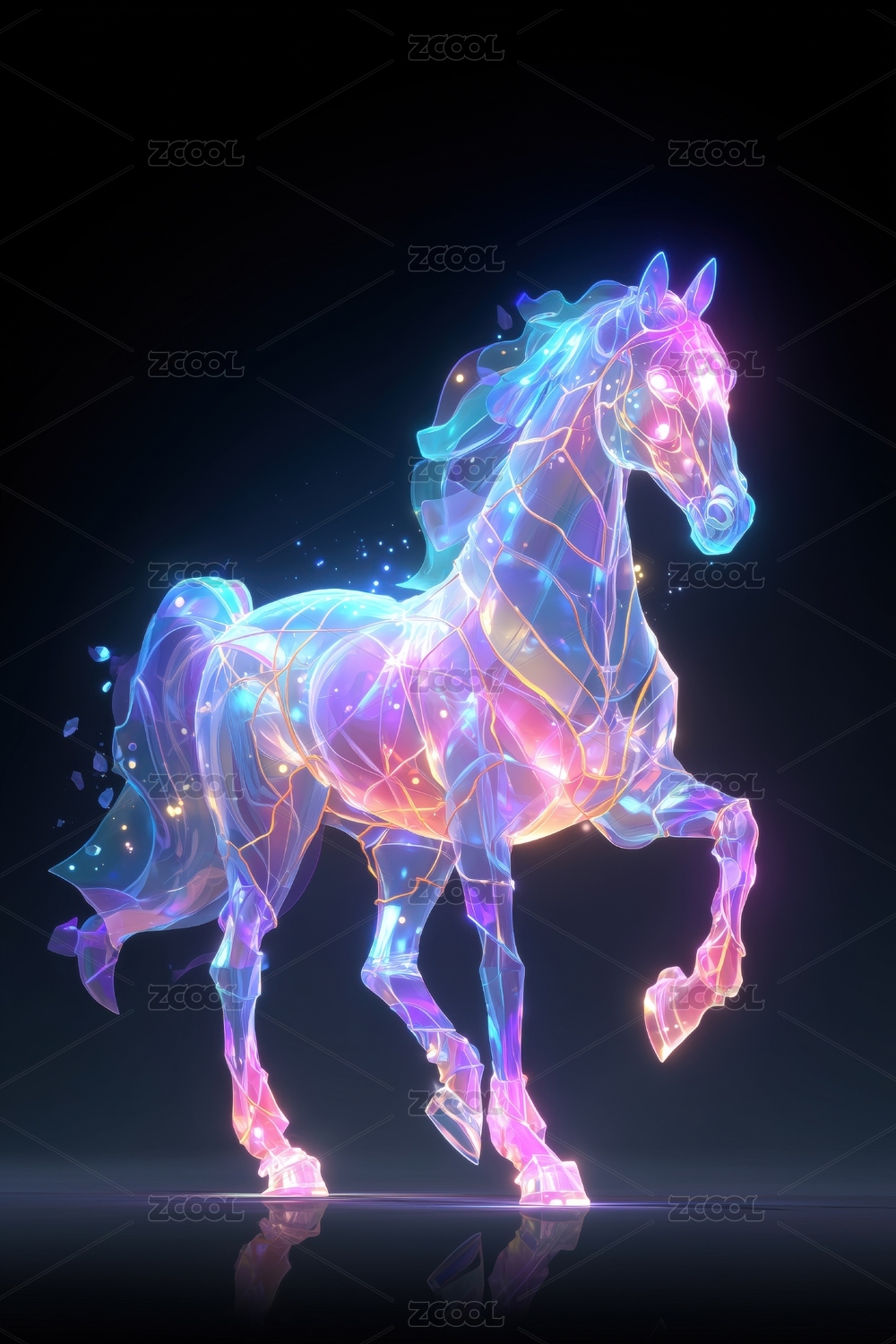 创意唯美金属透明彩色3D卡通立体全息骏马
