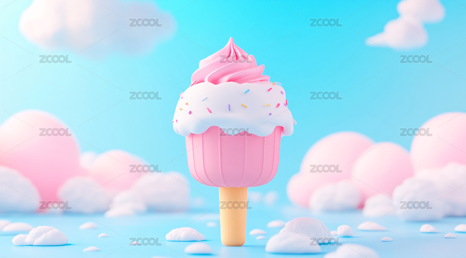 卡通,可爱,蓝色背景,装饰,烘焙,创意,柔和,云朵,粉色,奶油