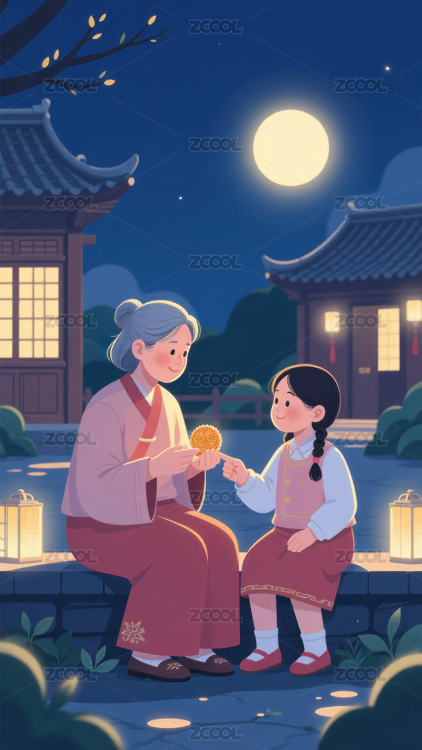 中秋佳节祖孙情深月下老人和小孩中秋节