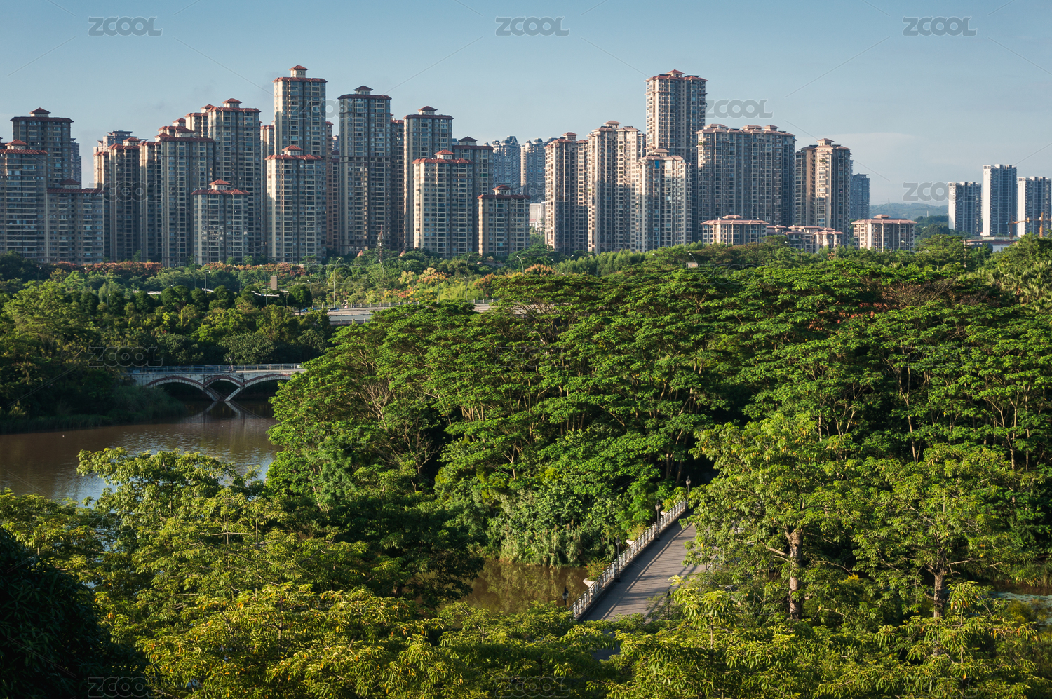 在广西南宁青秀山风景区俯瞰青秀区地标建筑