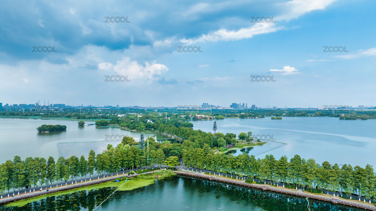 武汉东西湖区金银湖夏日航拍