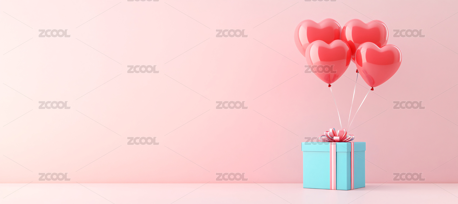 绑着丝带的礼品盒周围漂浮着粉色爱心