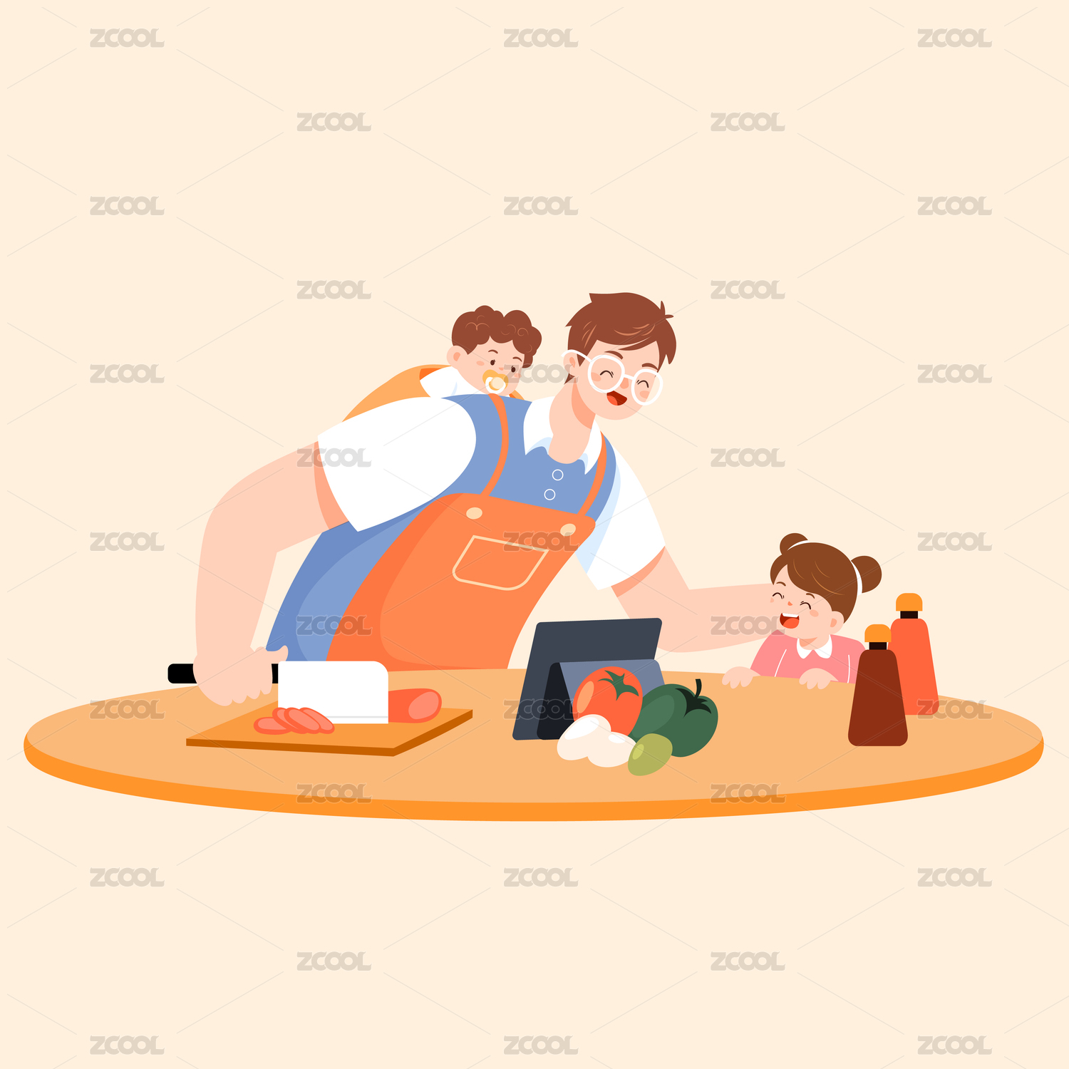 父亲节亲子烹饪矢量插画