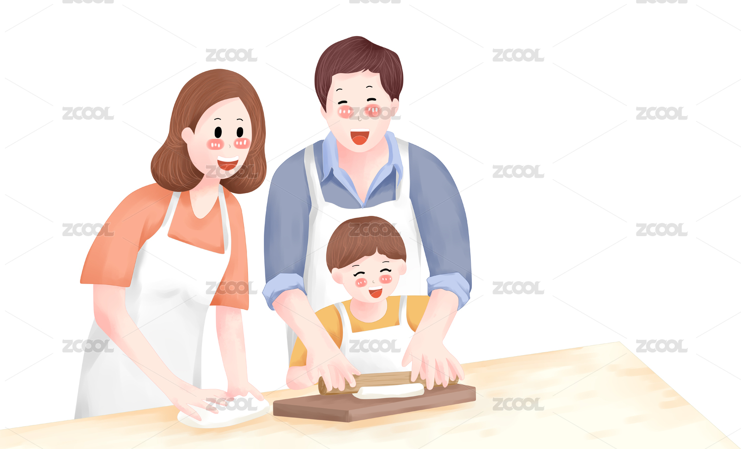 一家人在做美食的插画