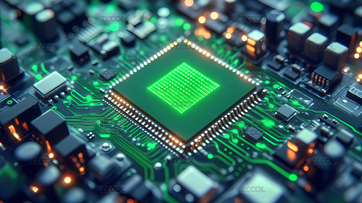 绿色发光的电路板和芯片