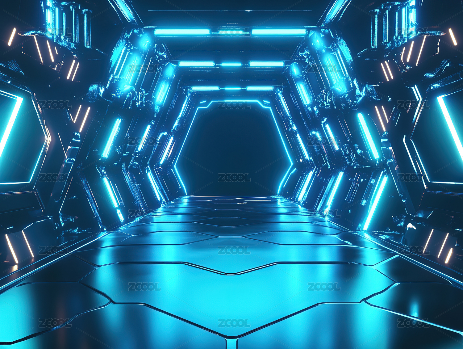 3D渲染科幻几何隧道霓虹灯线概念插图