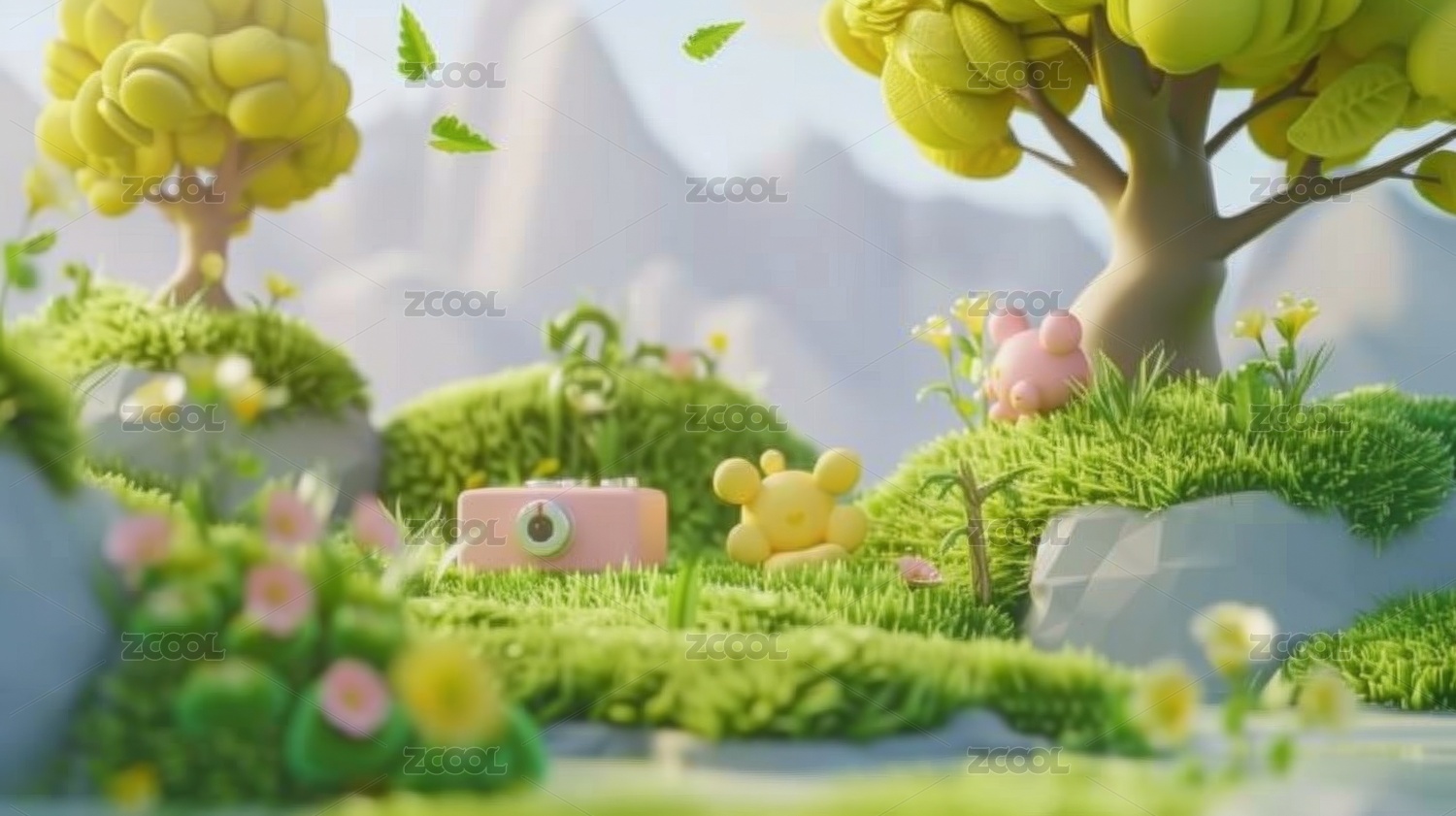 3d,梦幻,卡通,童话,清新,自然,游戏,儿童,多巴胺,糖果色
