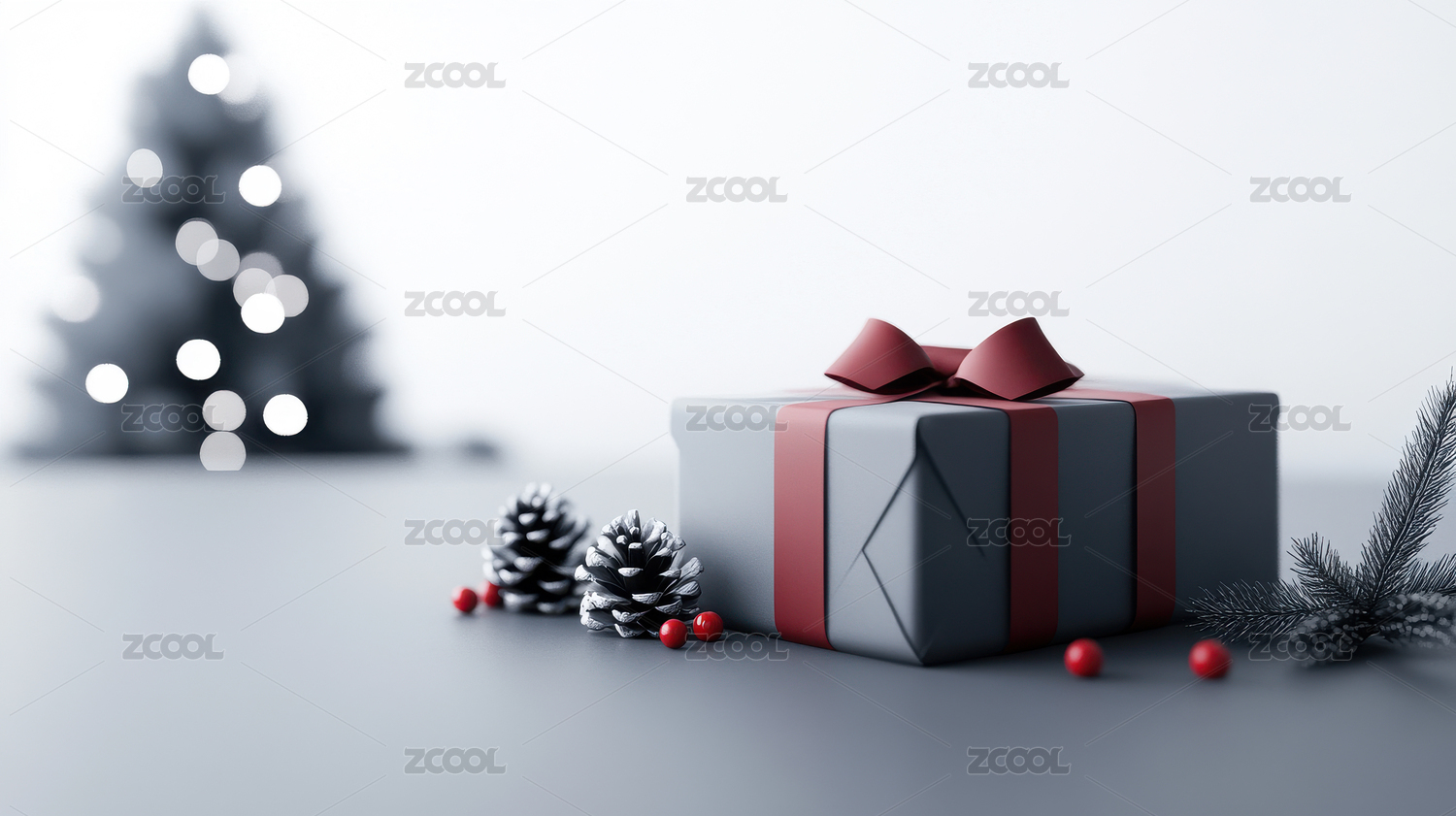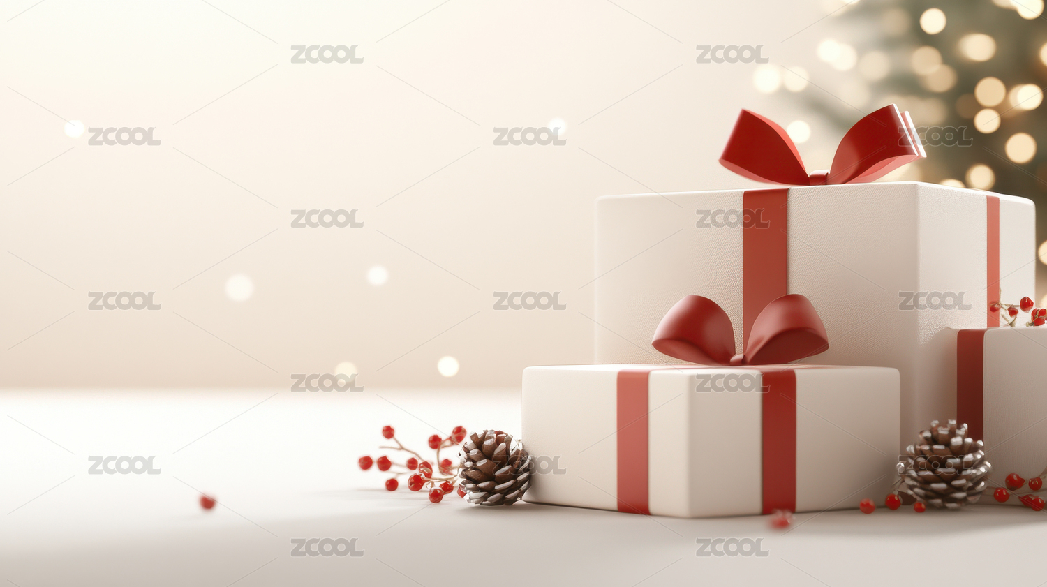 圣诞礼物盒 红丝带 节日氛围