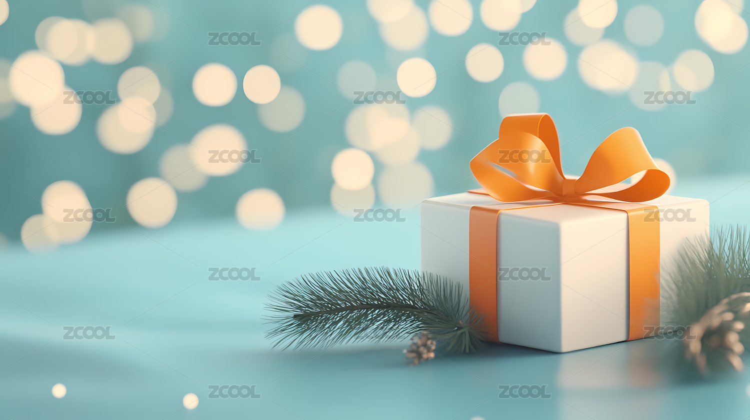 绿色礼物盒与松果