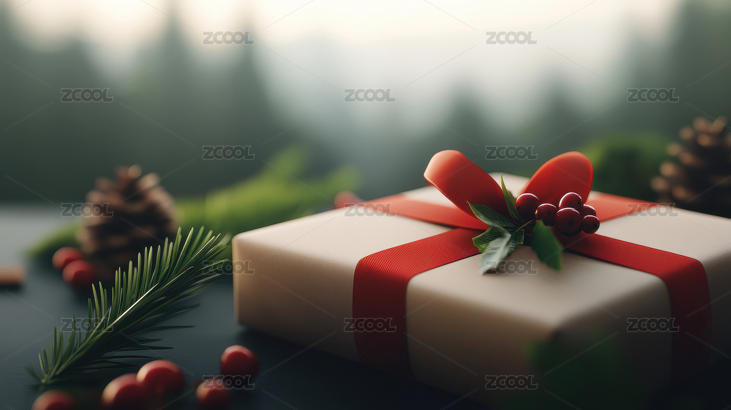 圣诞礼物盒与松果