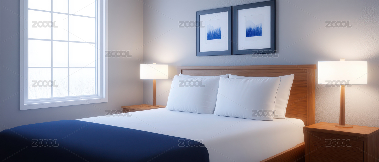 光线,现代,墙壁,床,枕头,被子,窗户,整洁,简约,舒适