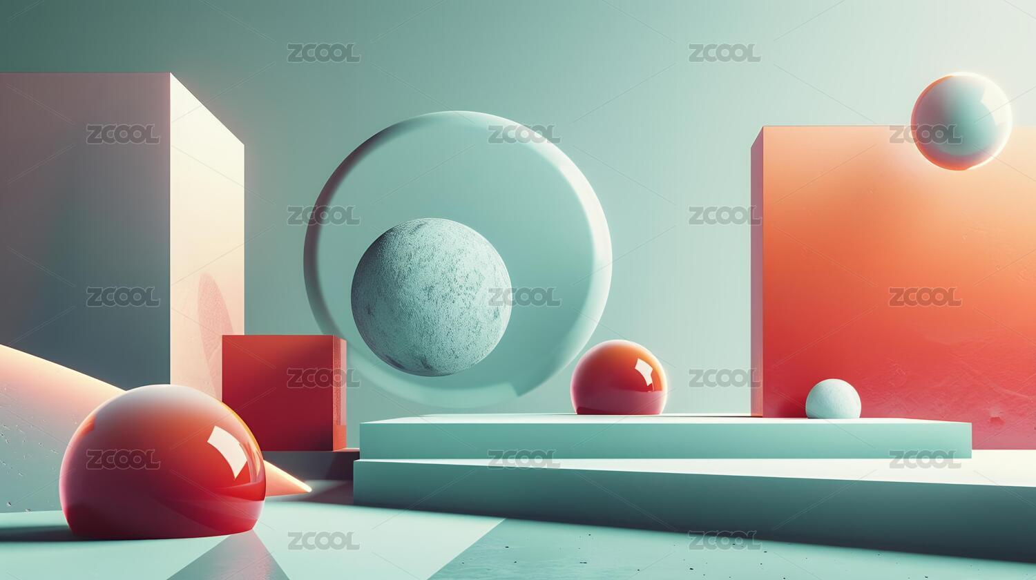 现代几何体柔和展示场景