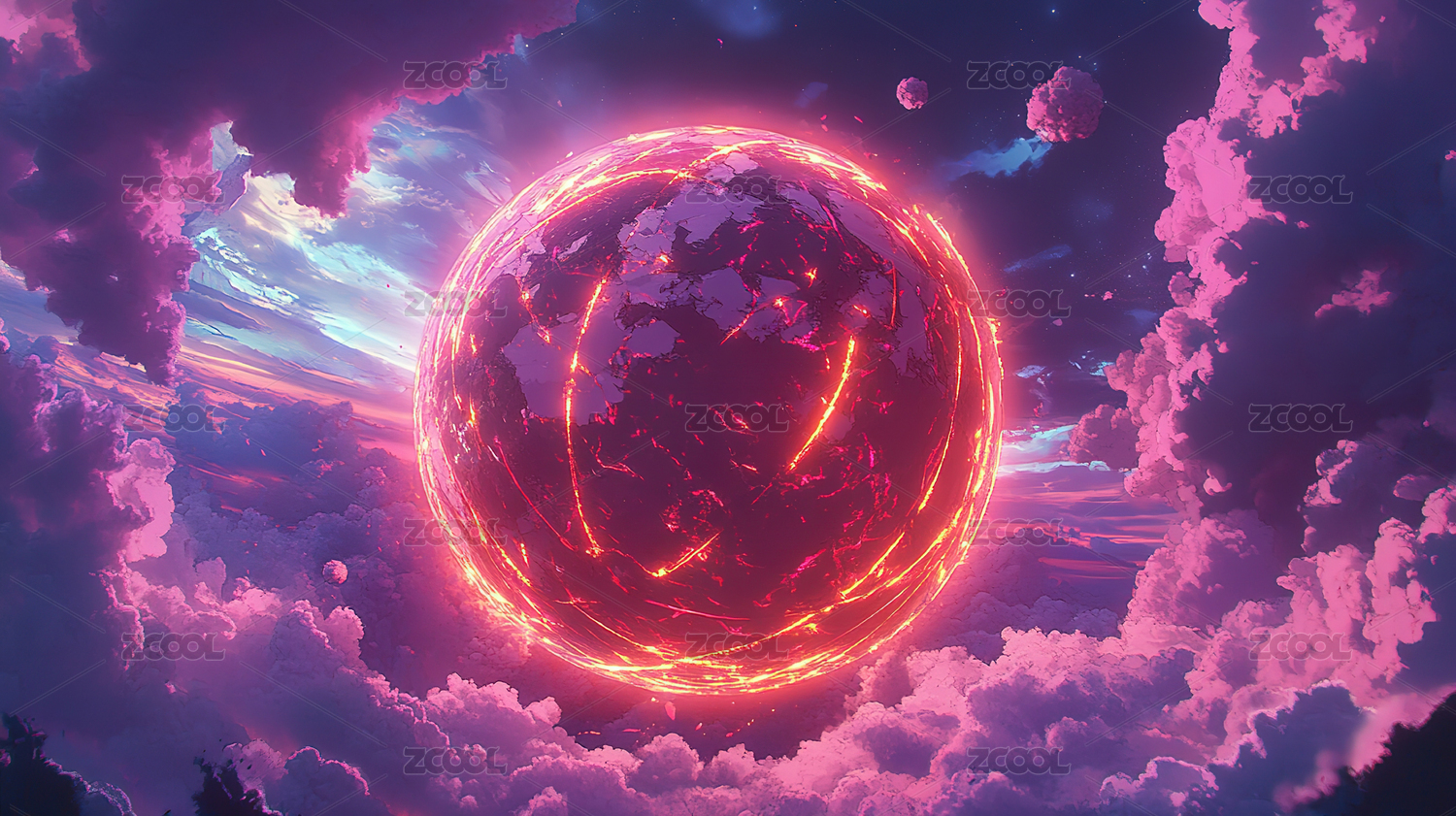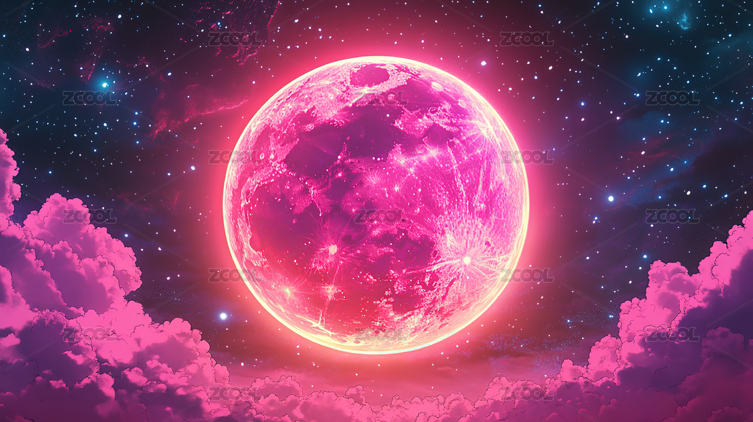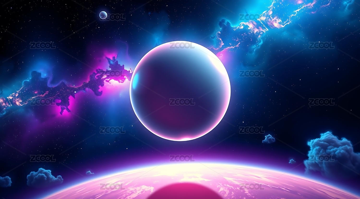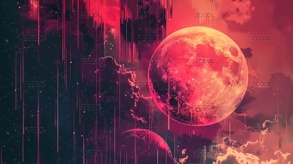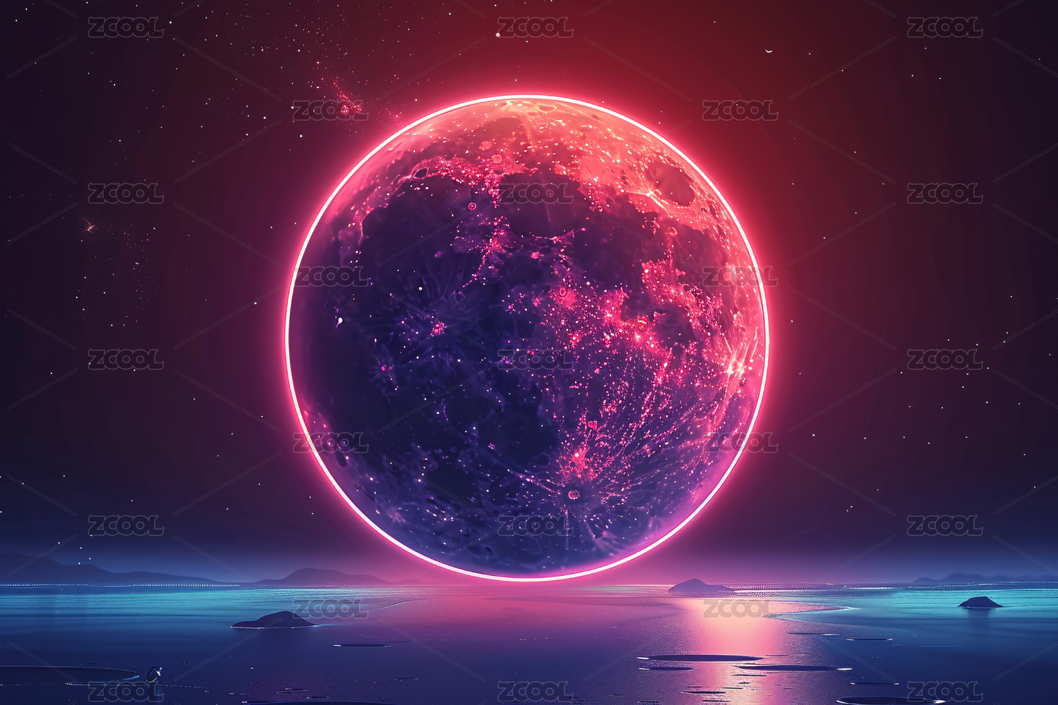 科幻,渐变,风景,自然,湖面,星空,月亮,晚霞