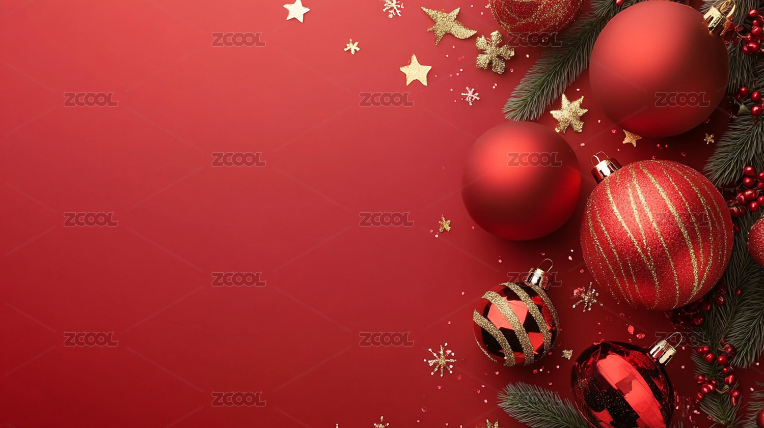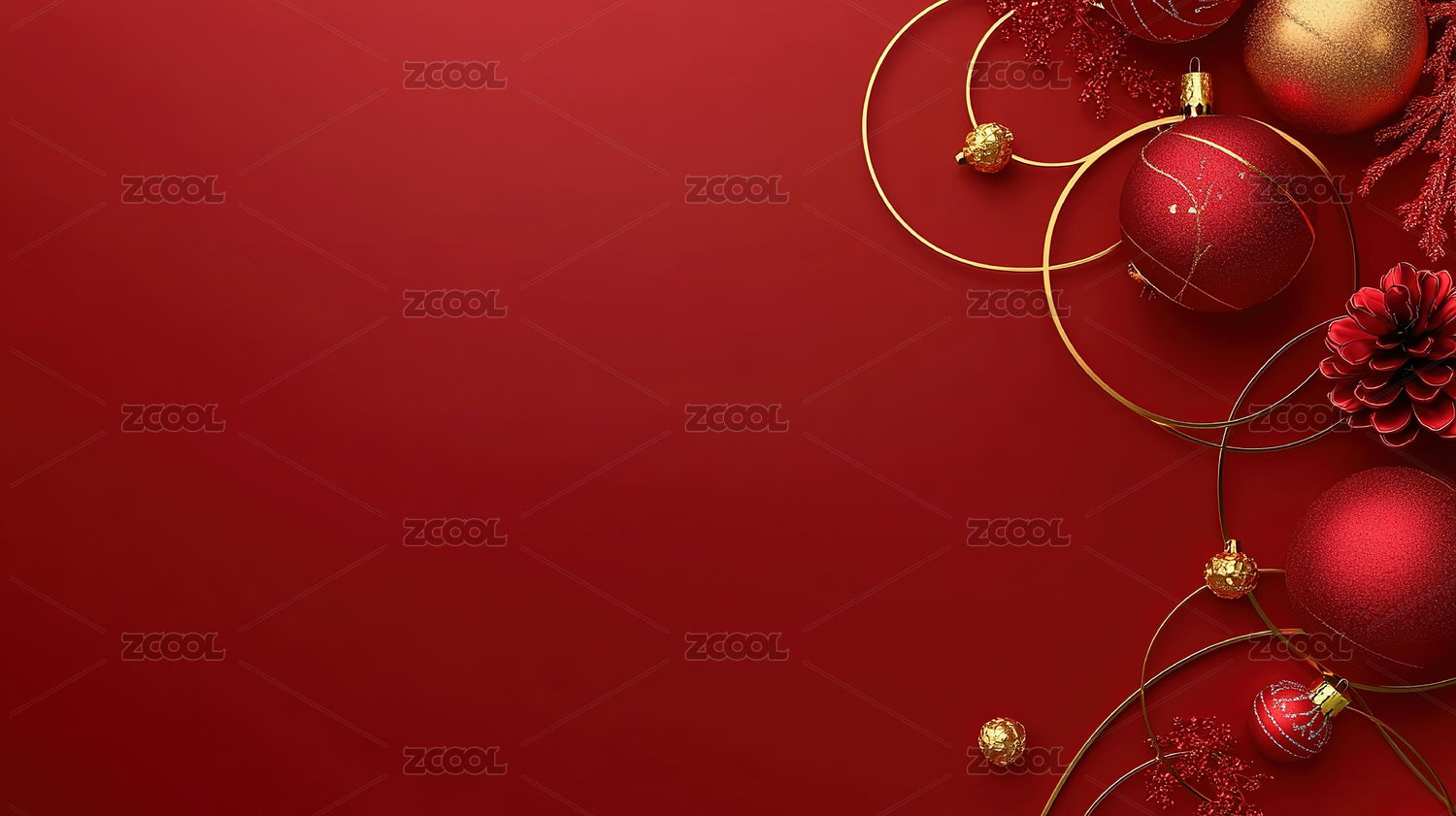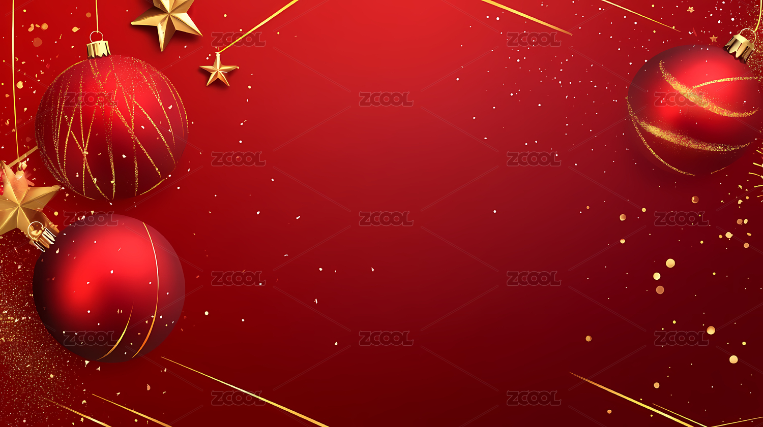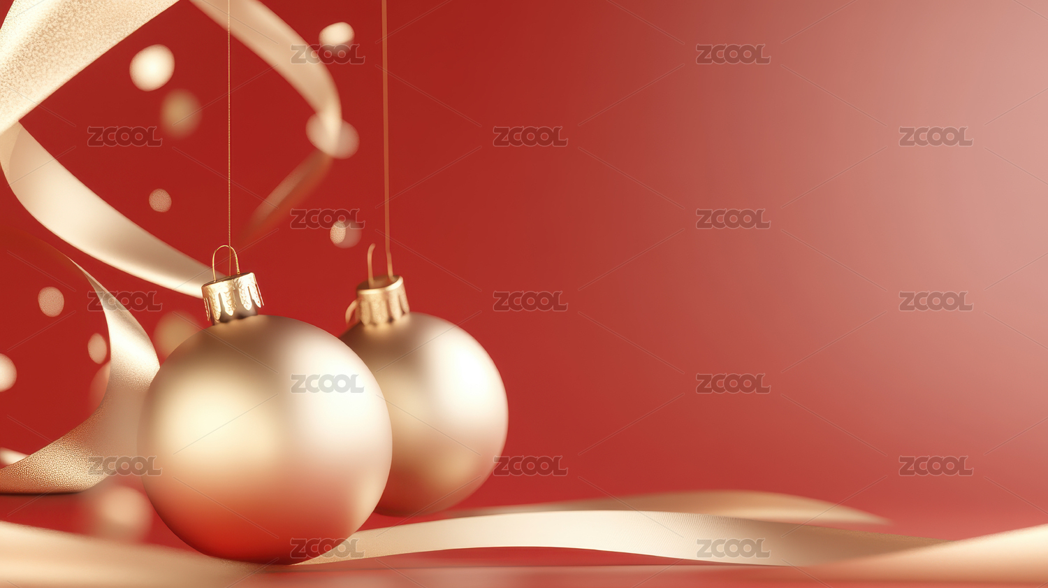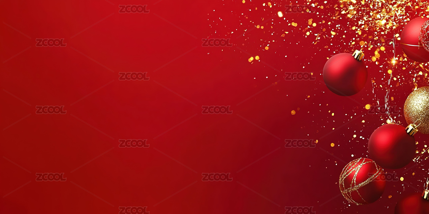 红色闪亮装饰圣诞球圣诞节节日庆典红色背景