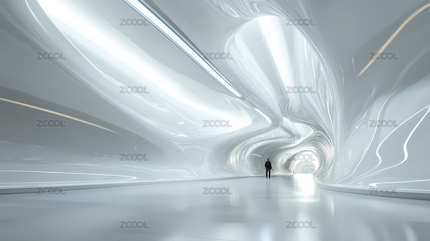 未来主义白色建筑隧道