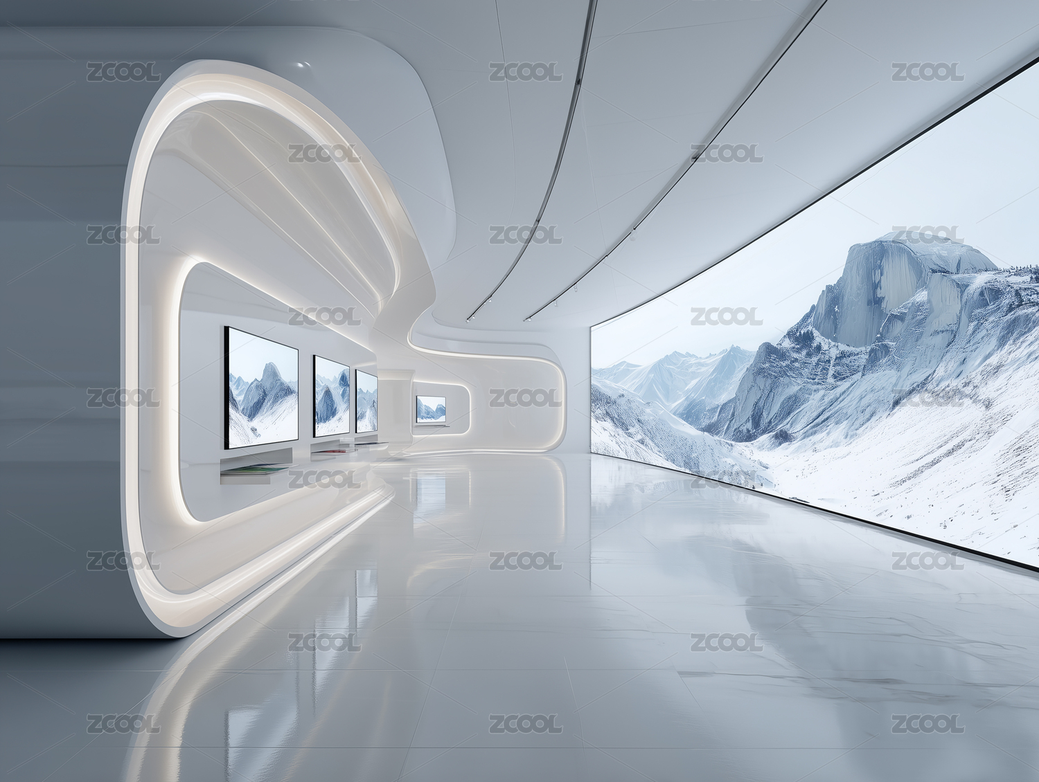 弧形展厅雪山全景幕
