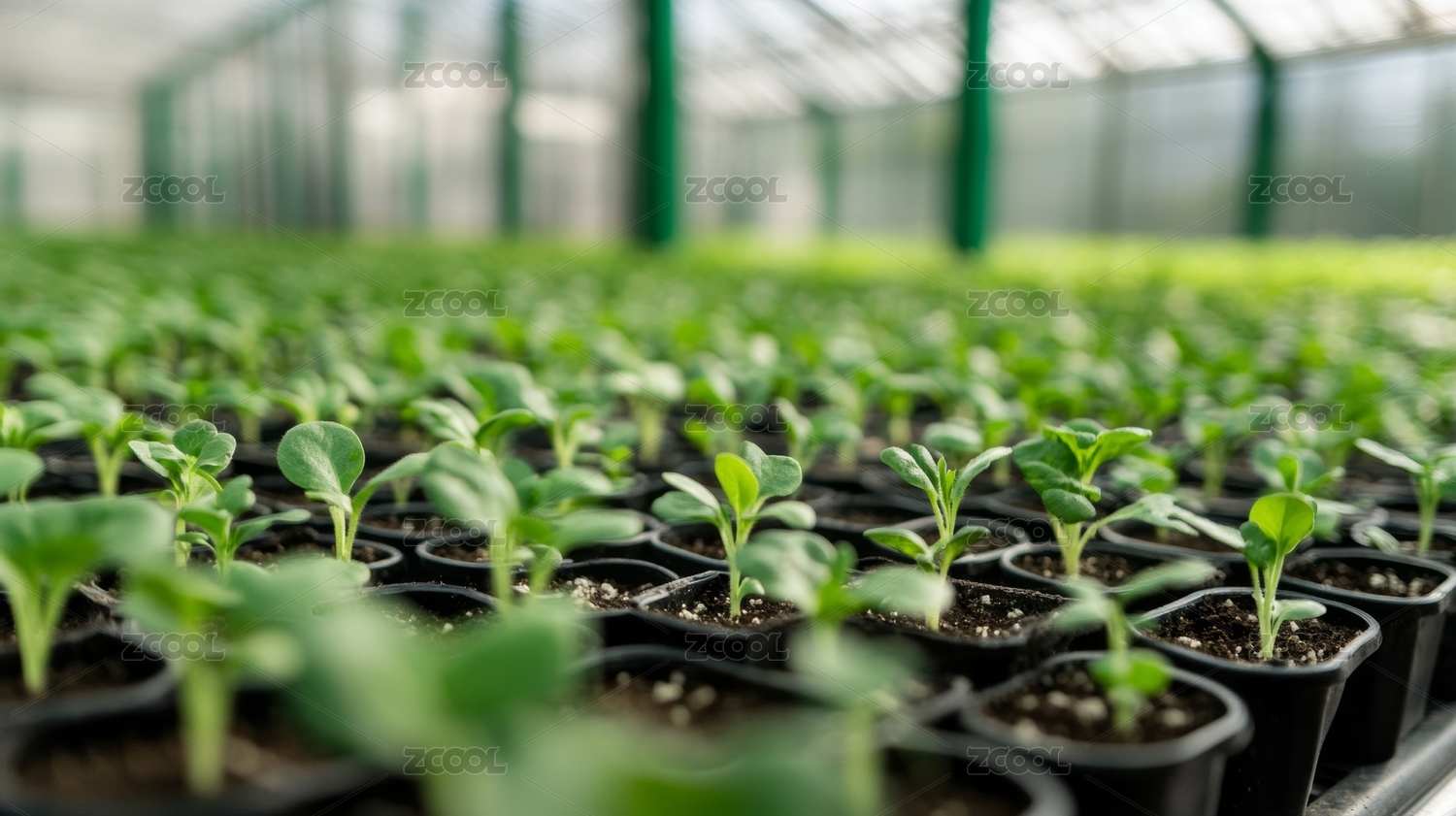 穴盘里培育的整齐发芽的蔬菜幼苗