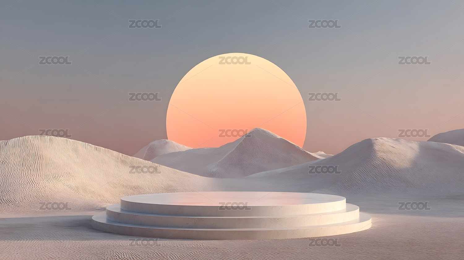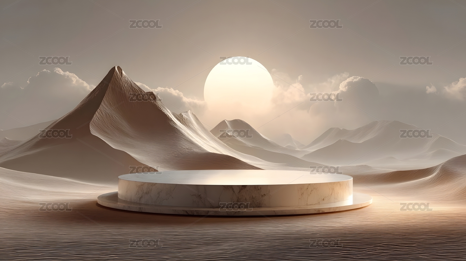 沙漠戈壁滩地形与发光科技平台产品展台背景