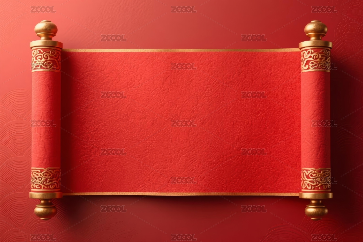 红色,中国风,空白,卷轴,画轴,卡通,装饰,春节,设计,图标