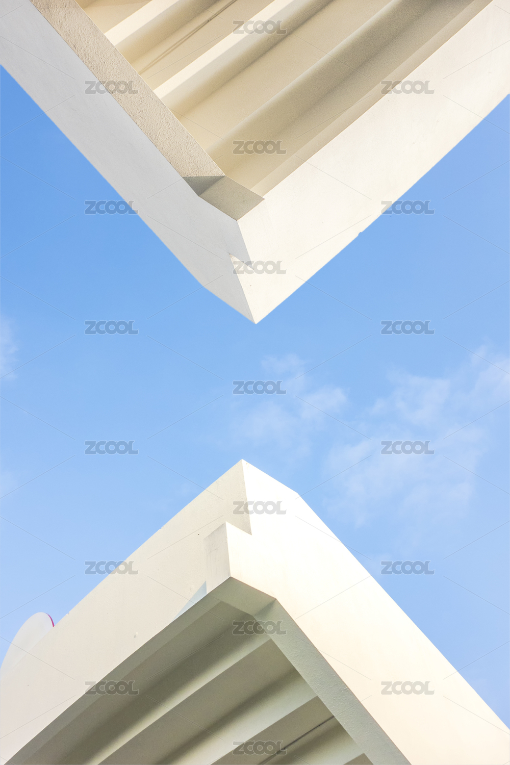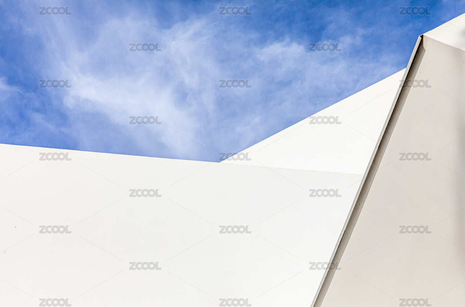 纯色抽象几何形状背景(黑白配色、蓝天白云