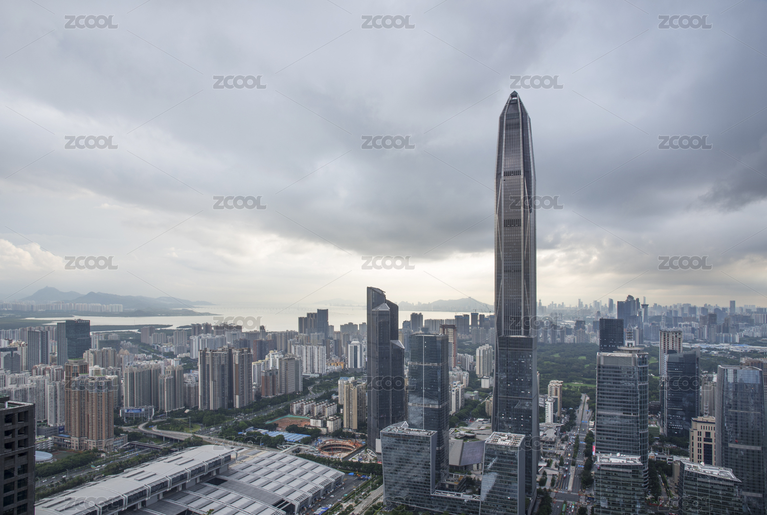 粤港澳大湾区,鸟瞰中国深圳平安大厦天际线建筑群风光