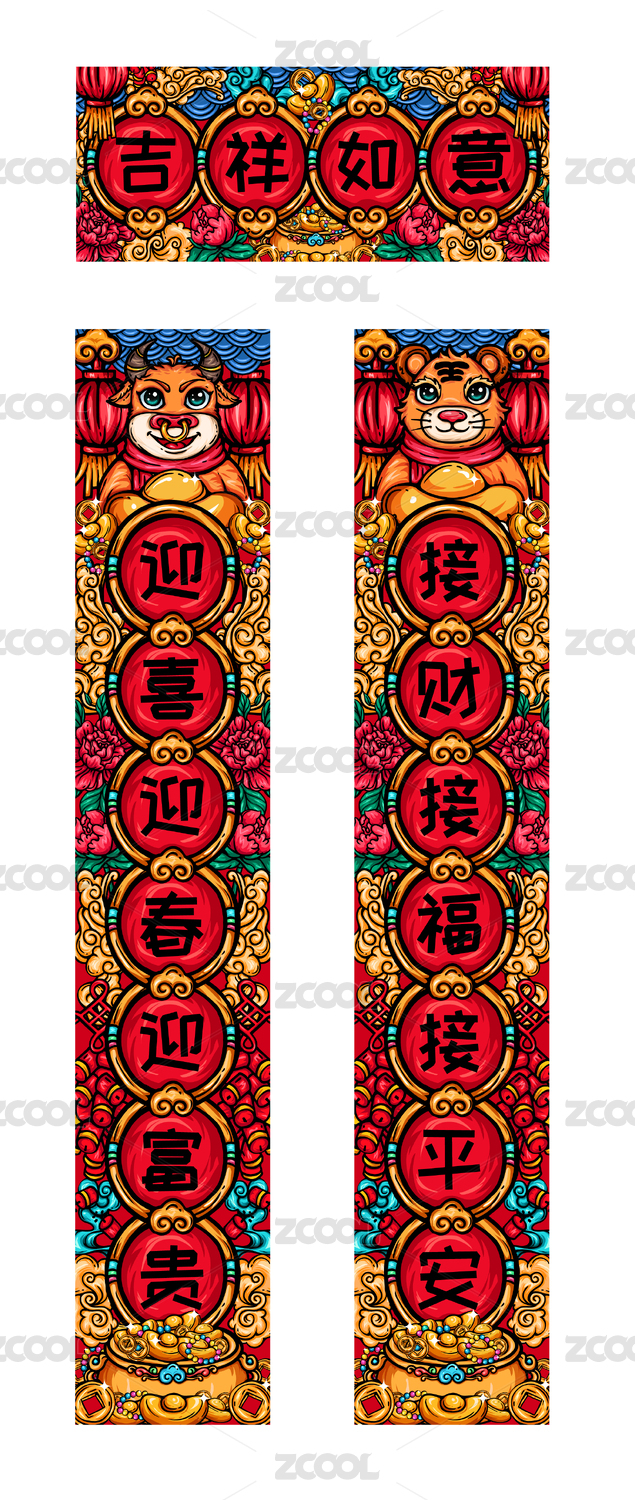 春节对联插画设计模板