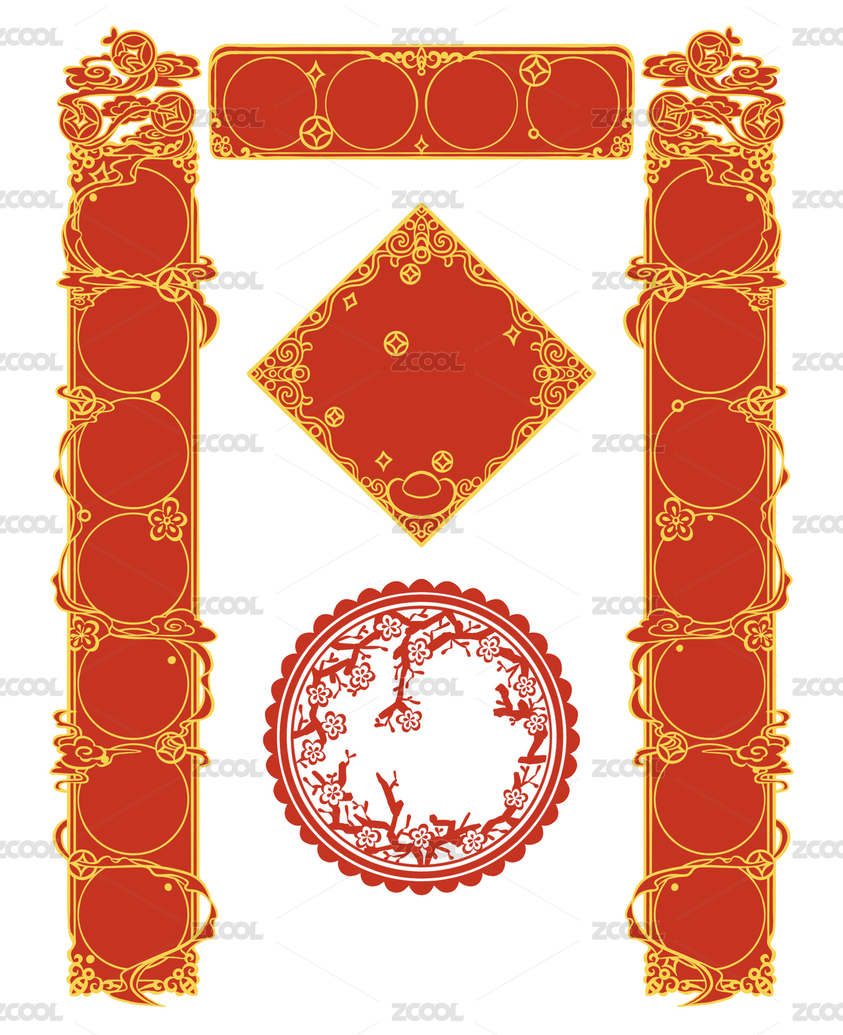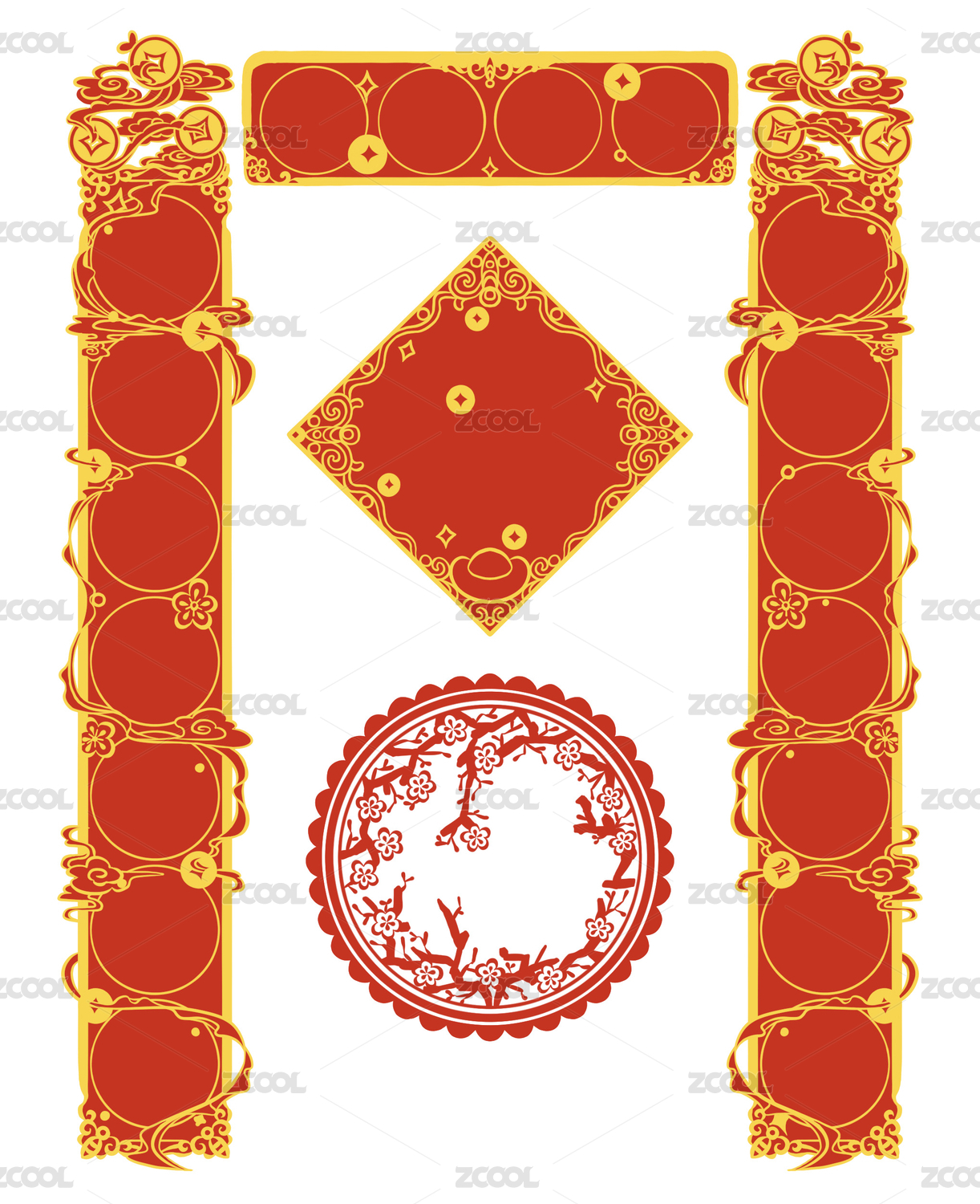 中国传统的彩色花边装饰花纹图案 ,红色喜庆背景