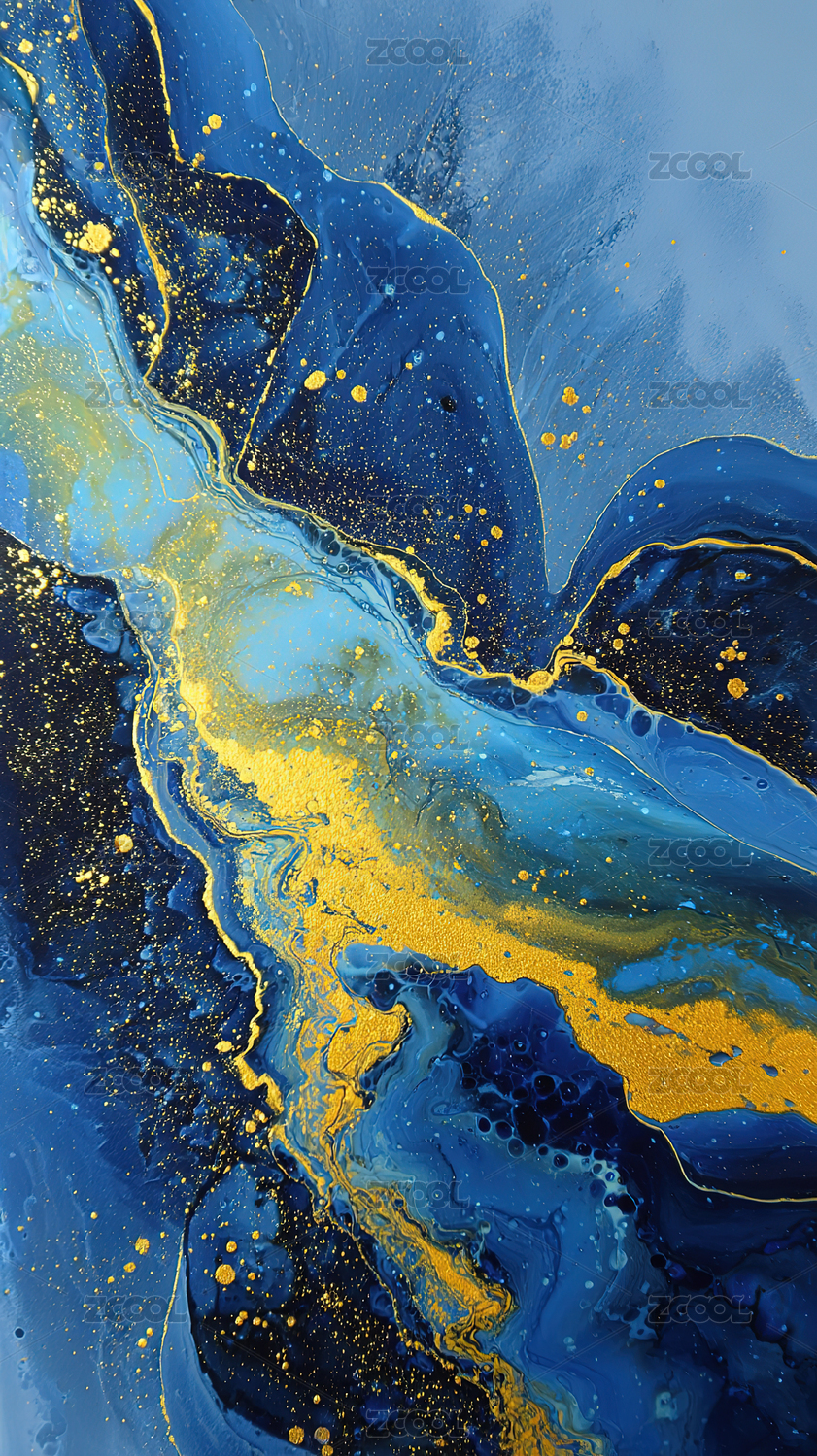 蓝金抽象流体艺术