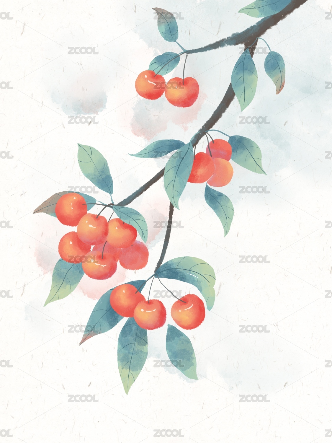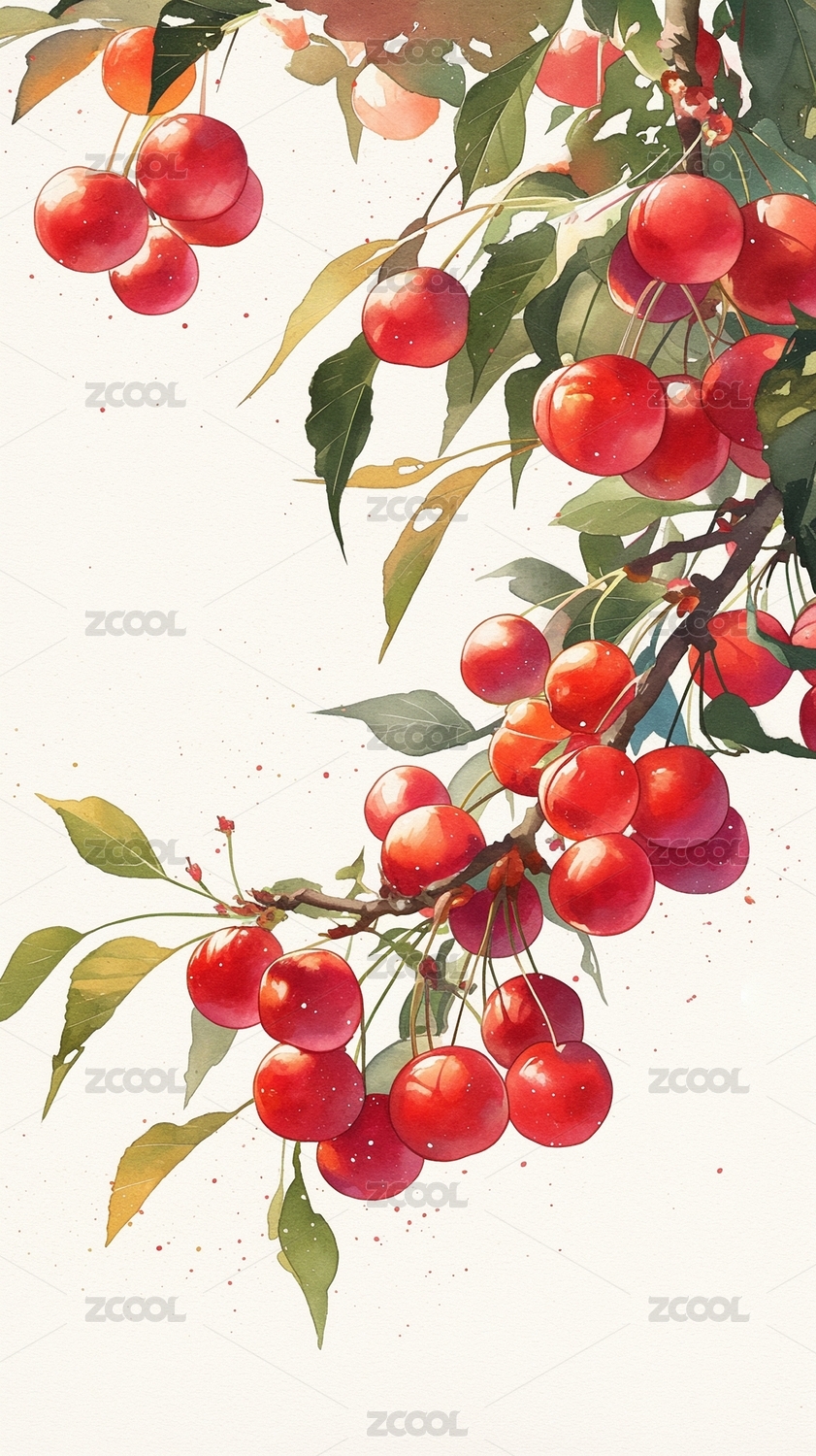 古风水彩植物果实樱桃