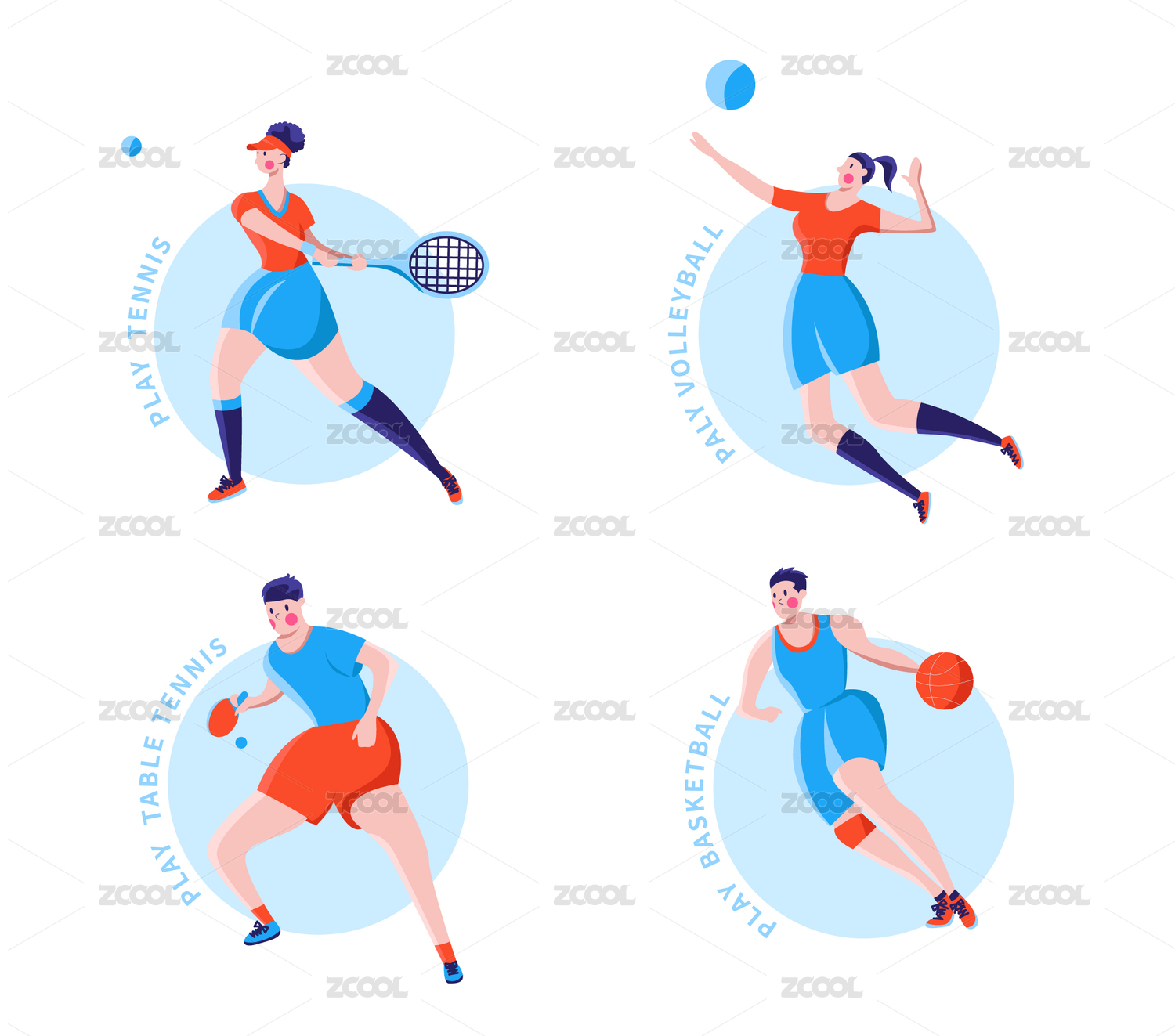 打球运动人物,扁平插画篮球网球