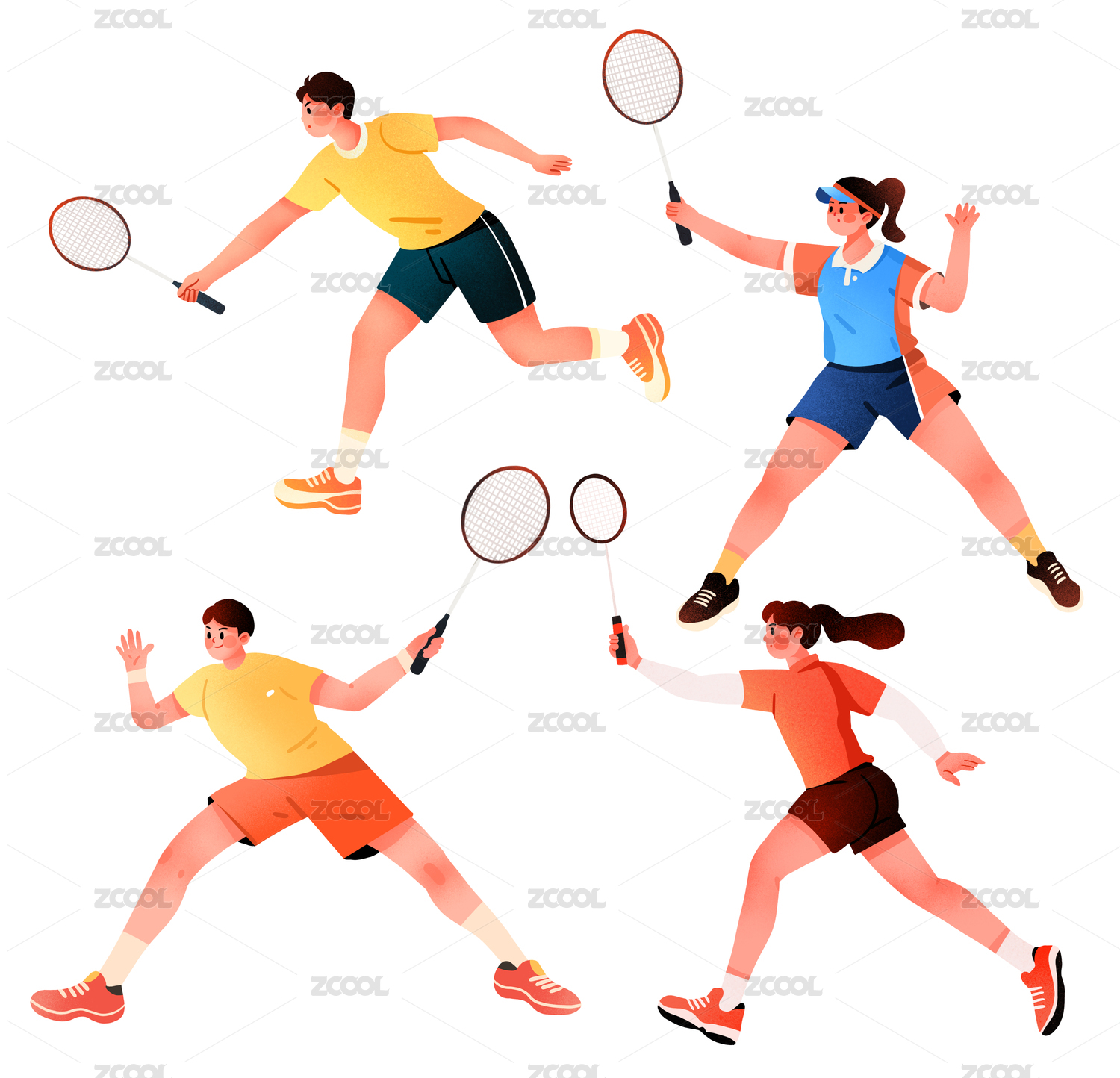 打羽毛球插画