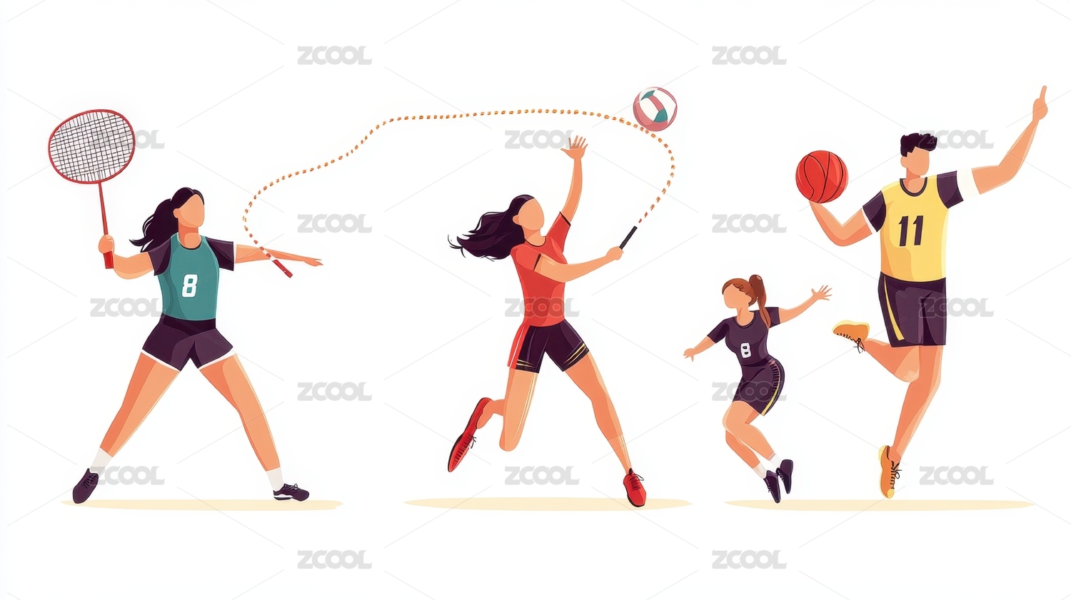 扁平简约矢量球类运动人物