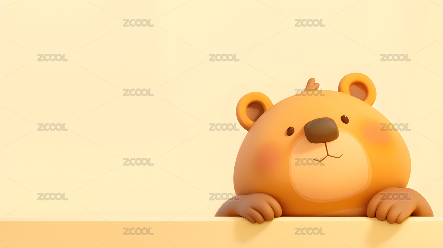可爱卡通小熊3D渲染黄色背景