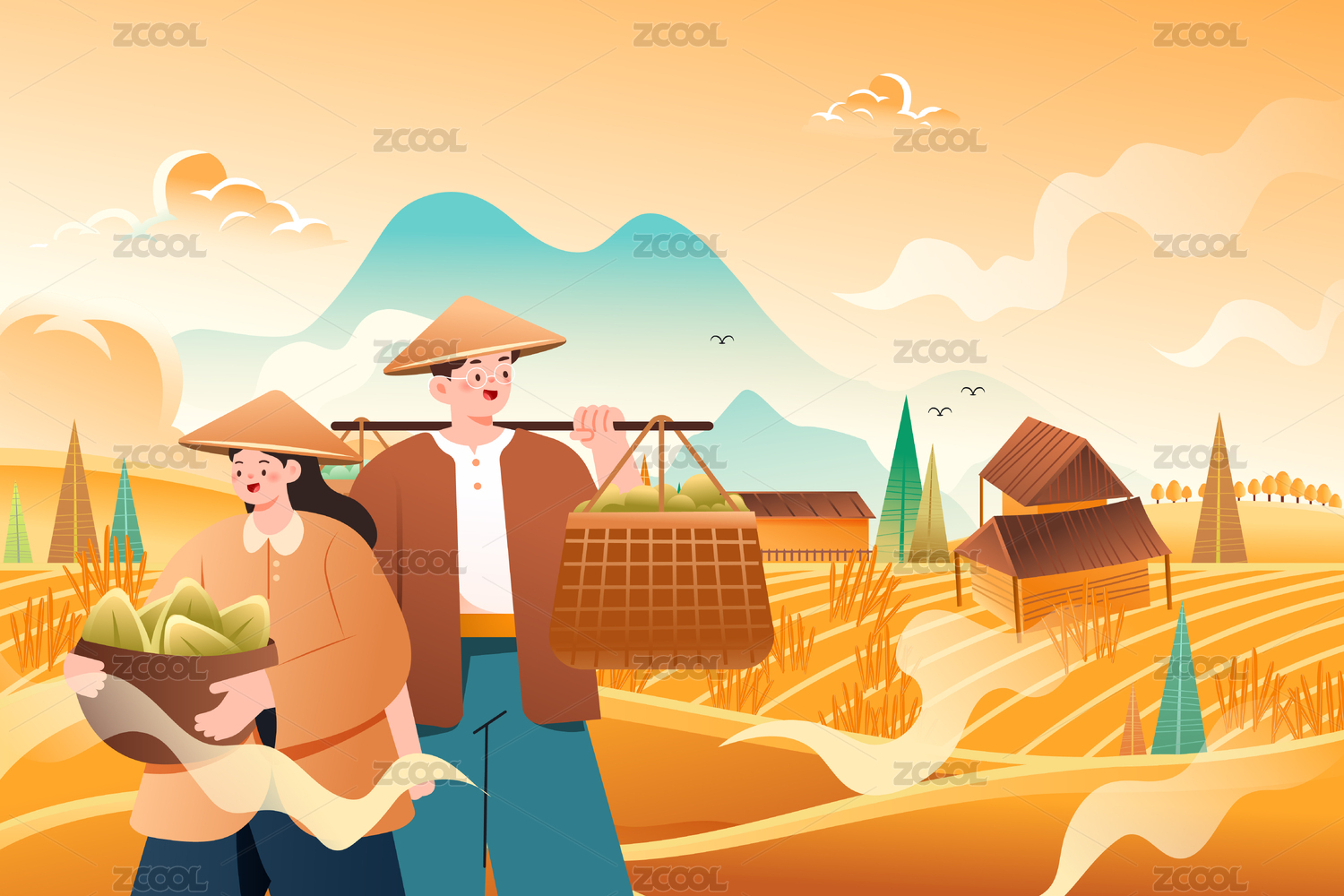春分茶农茶园采茶工人户外劳动丰收农业插画
