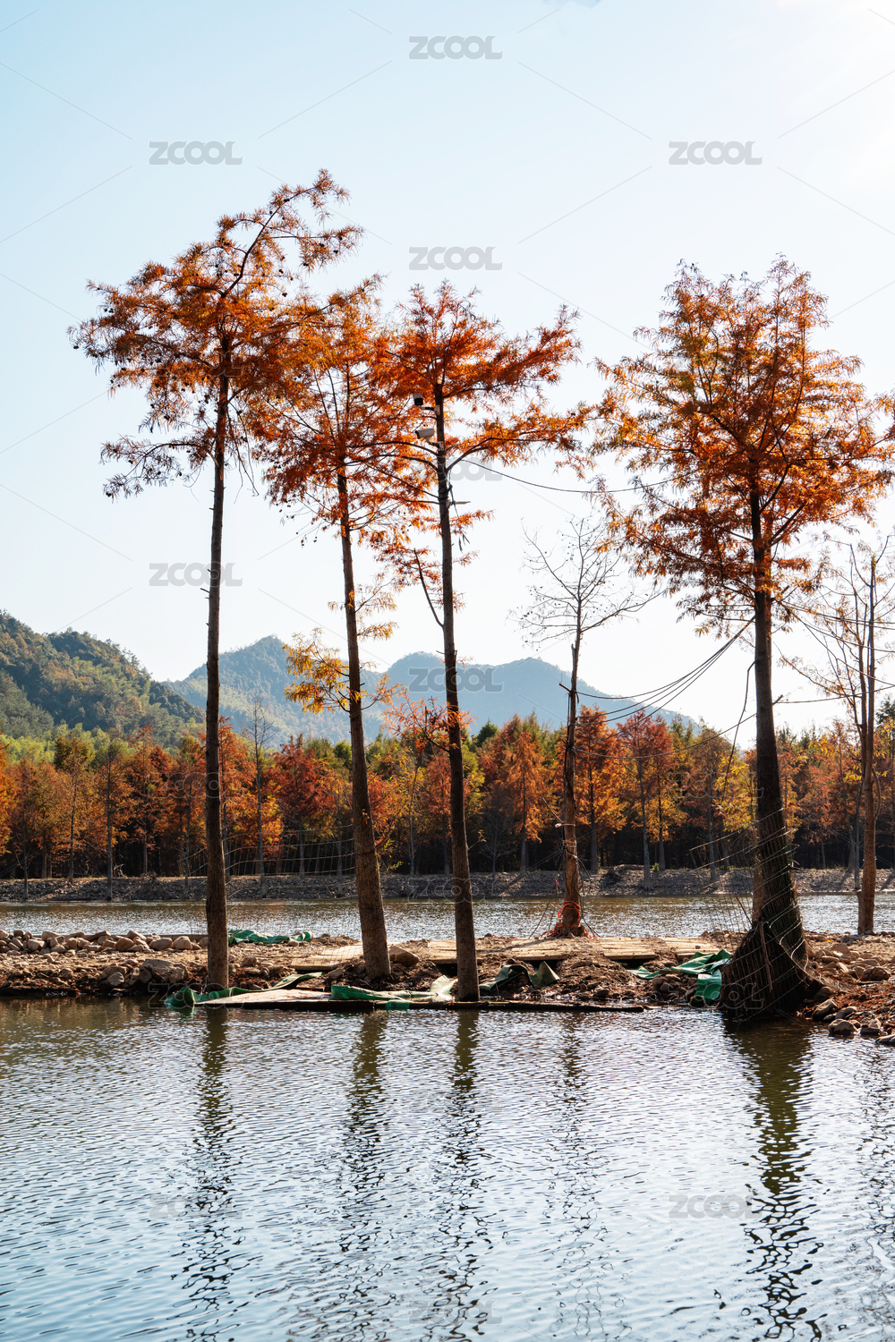 中国安徽宁国方塘乡落羽红杉林自然风光
