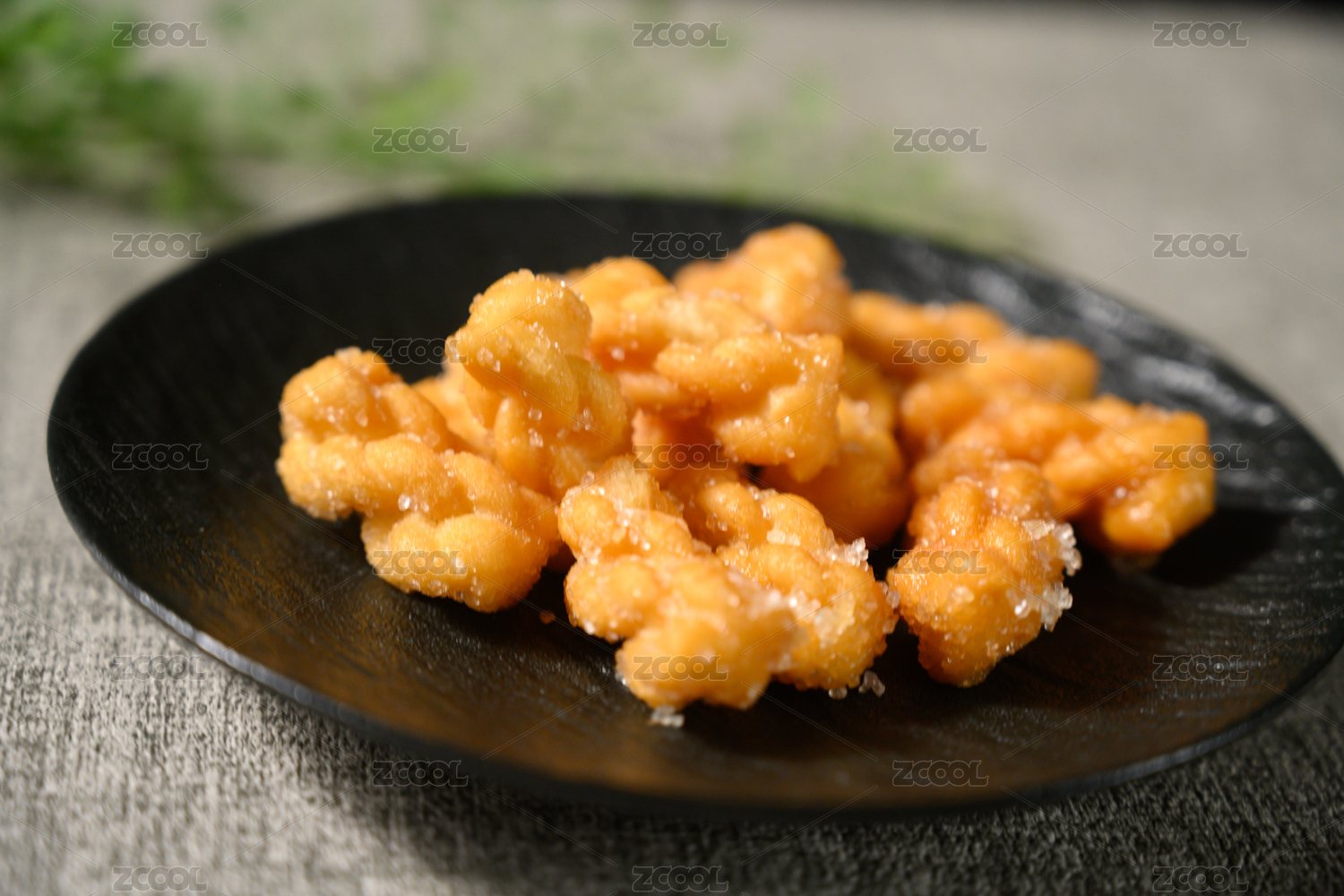 桌面上的盘子里的美味可口的小酥肉