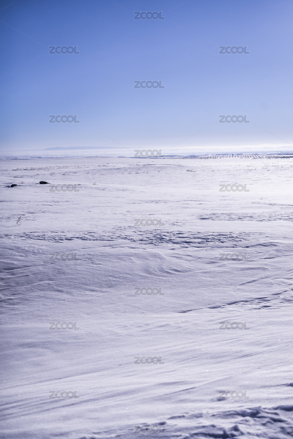 乌兰布统冬季蓝调时刻的唯美雪地雪景