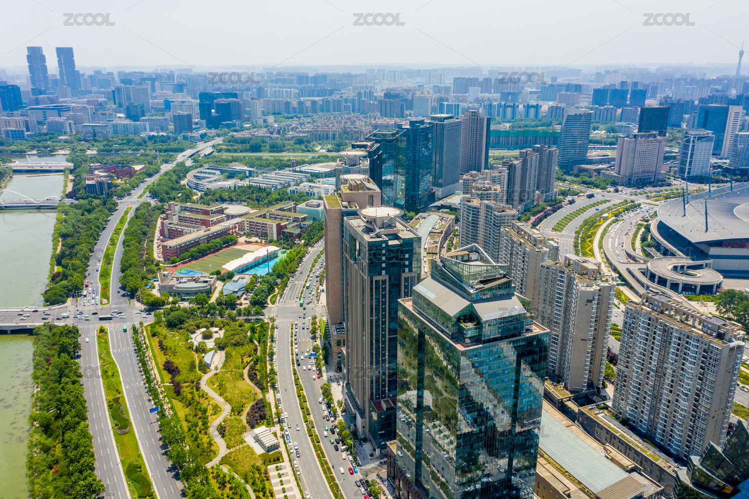 航拍郑州郑东新区城市天际线都市标志性建筑