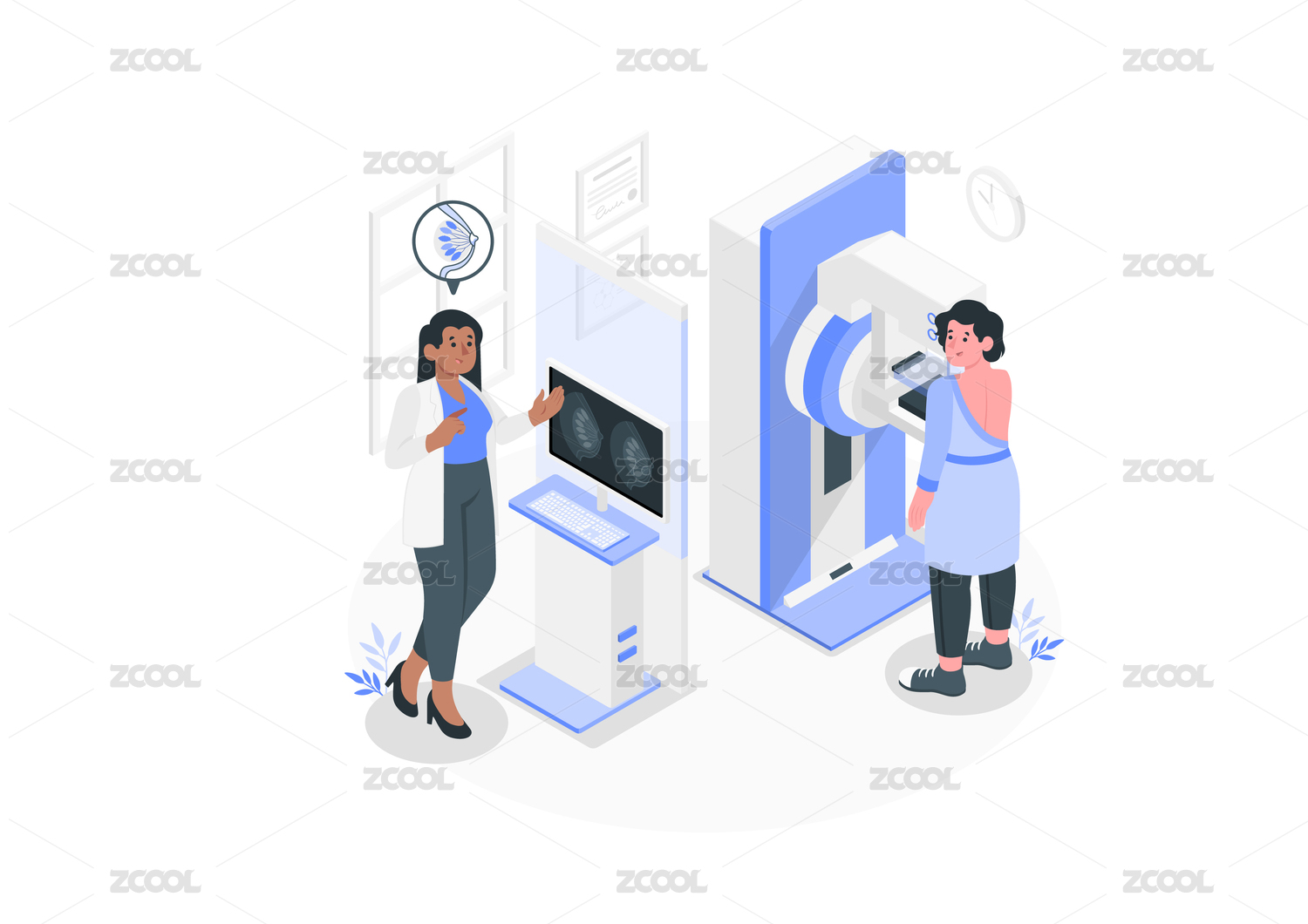 体检,胸片,扁平,插画,屏幕,医生,观察,检查,设备,医疗
