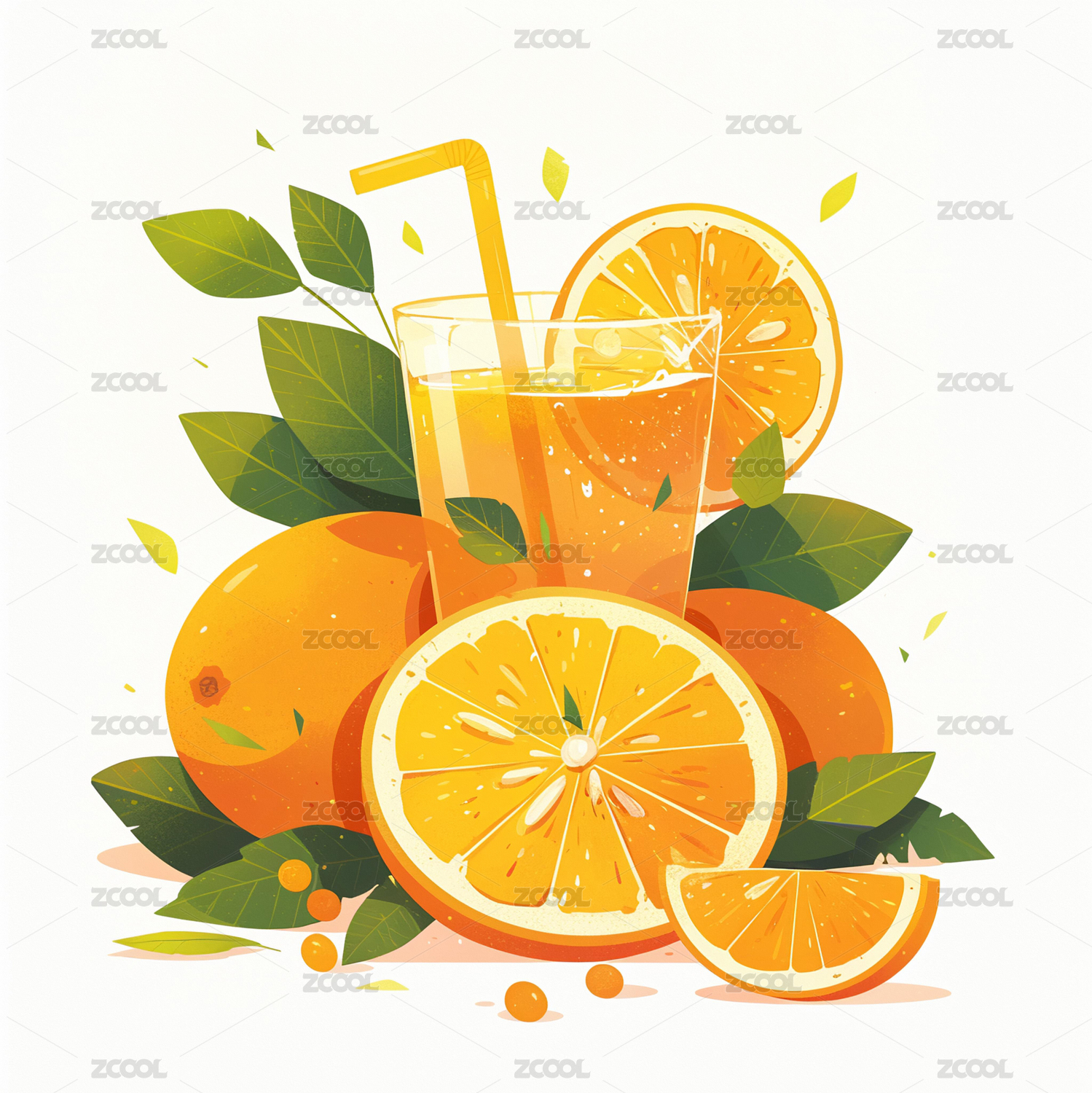 橙子橙汁水果插画