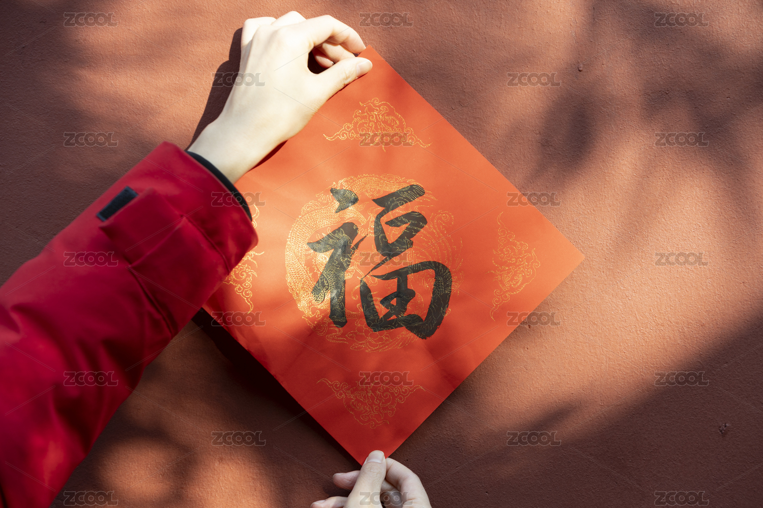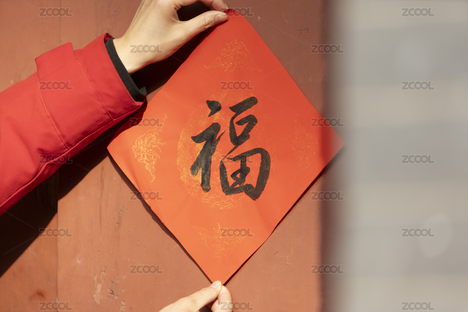 中国元素,春节,过年,贴春联,中国结,大门,窗花,窗户,传统节日,节日