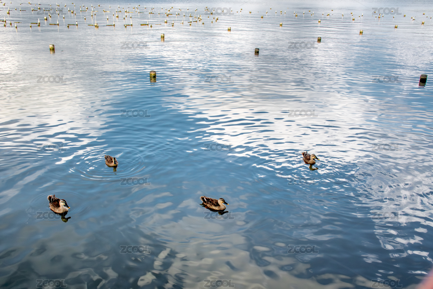 大连小长山岛海上养殖场的浮标上站立着海鸥