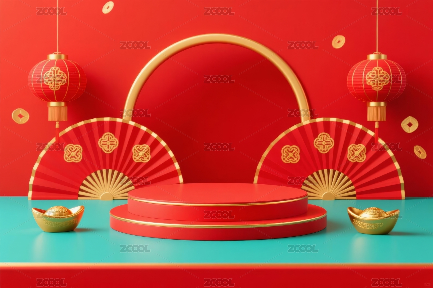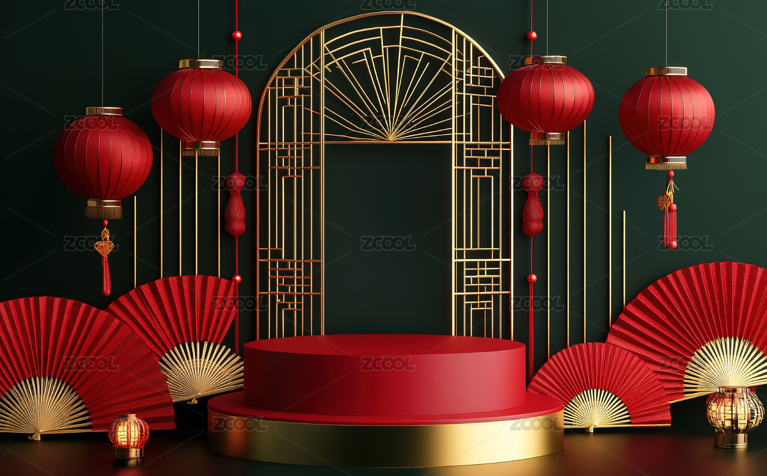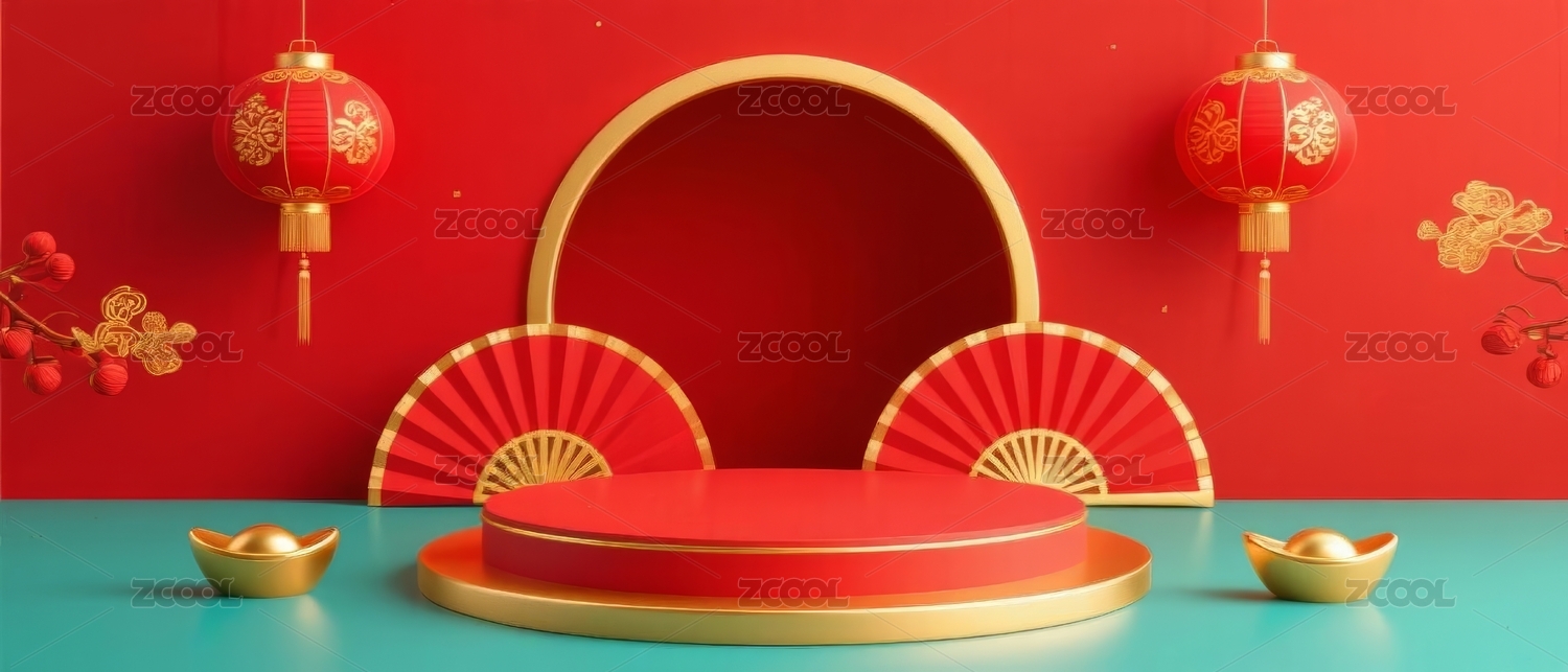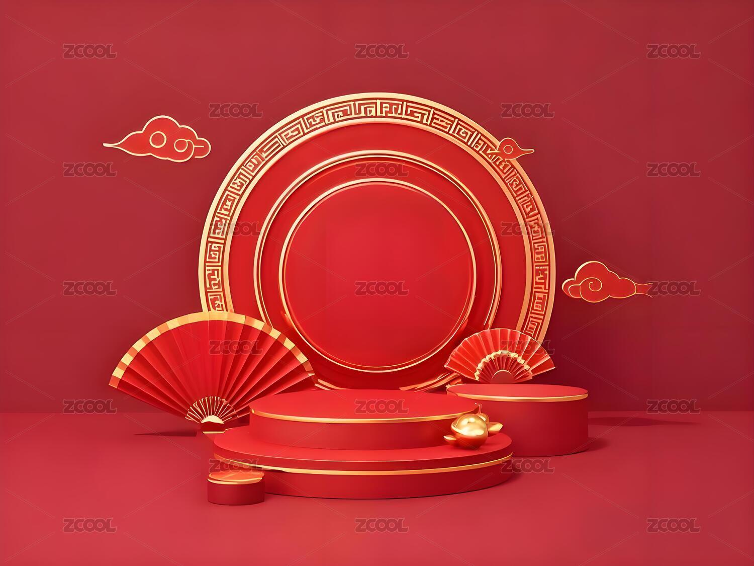中式元素红金展示场景