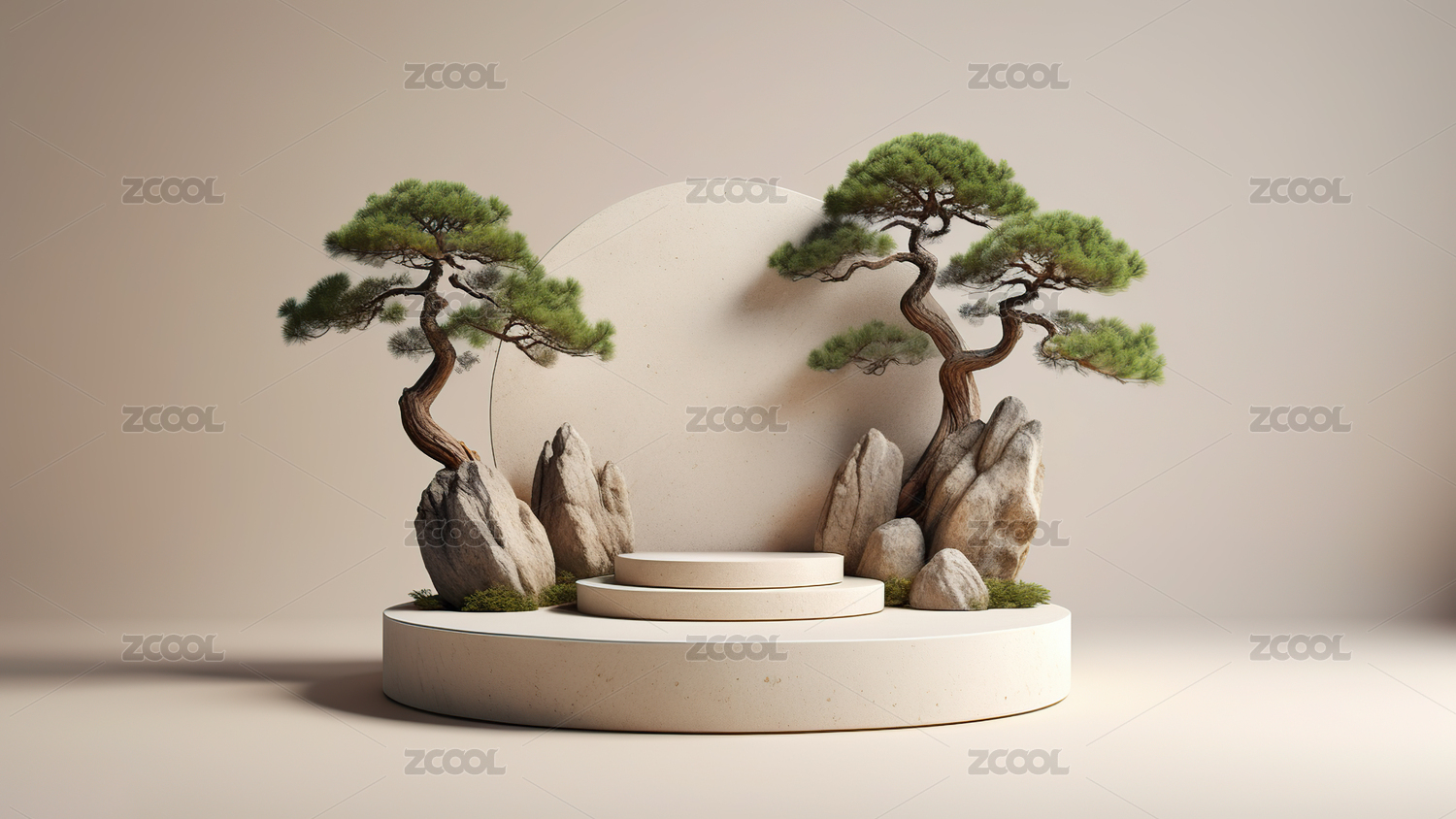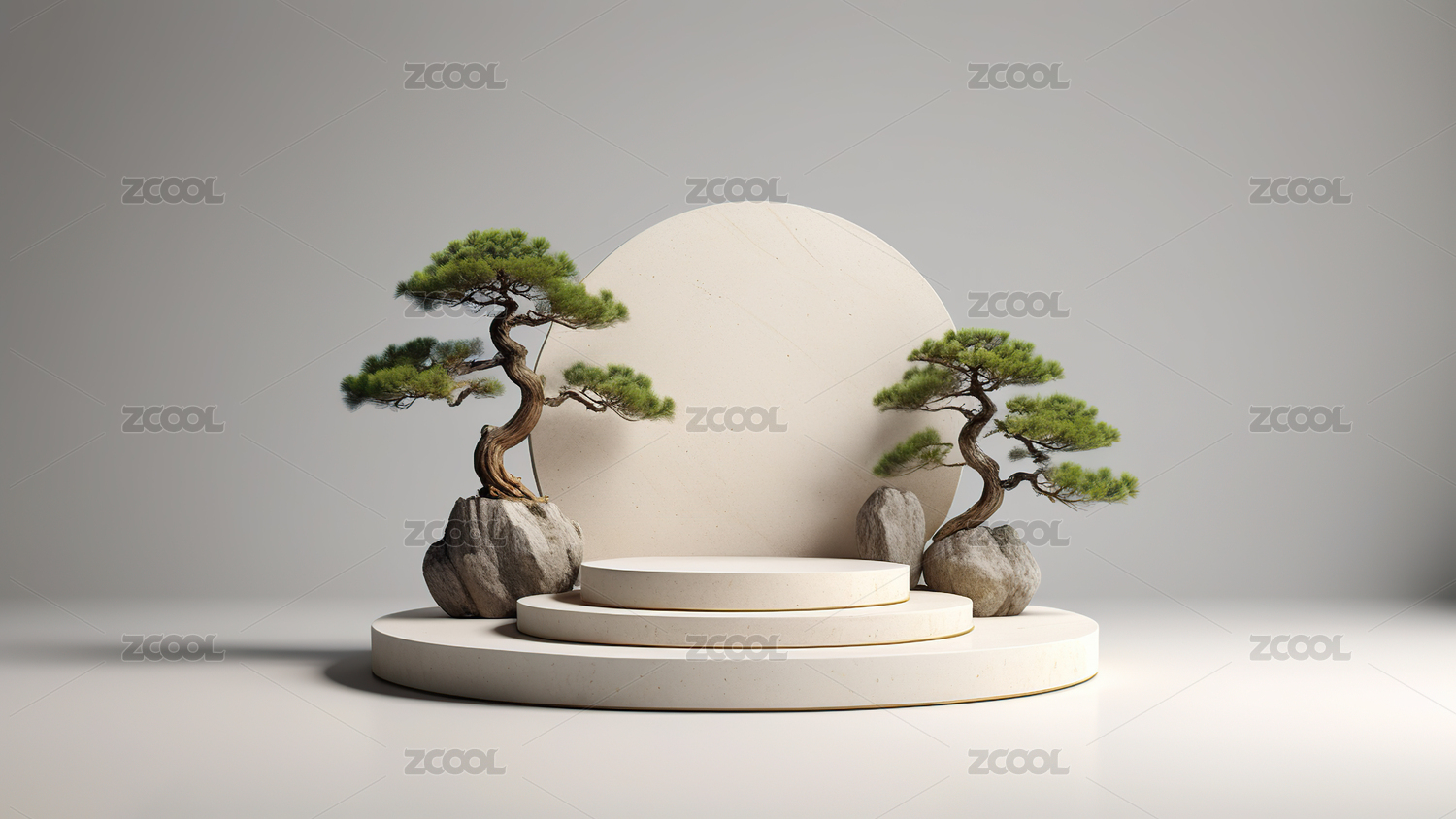 中式国风展台松树山石意境电商场景背景