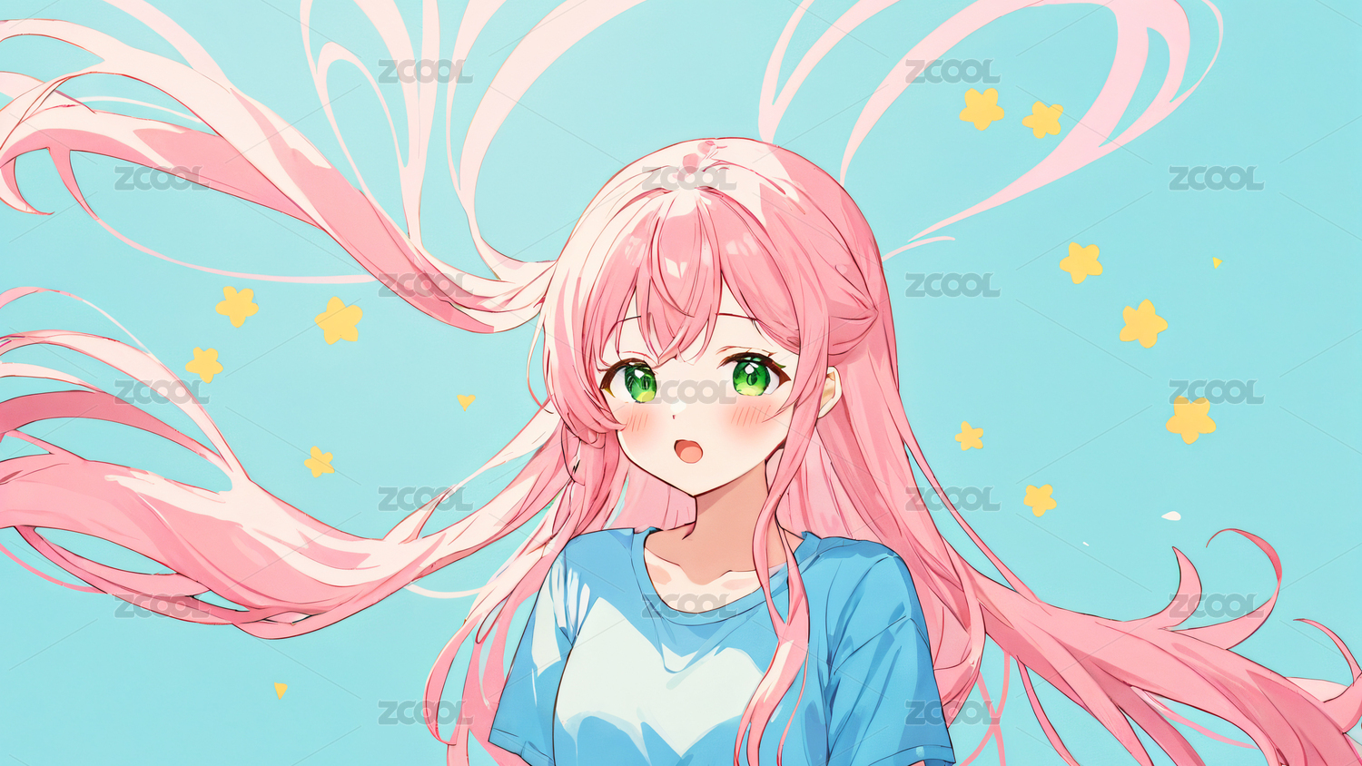 可爱的动漫女孩缤纷的色彩壁纸背景