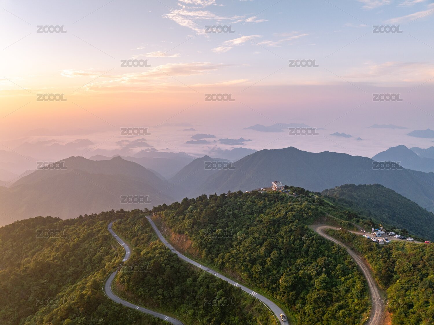 杭州萧山义桥寺坞岭望江阁日出天空云海竹海