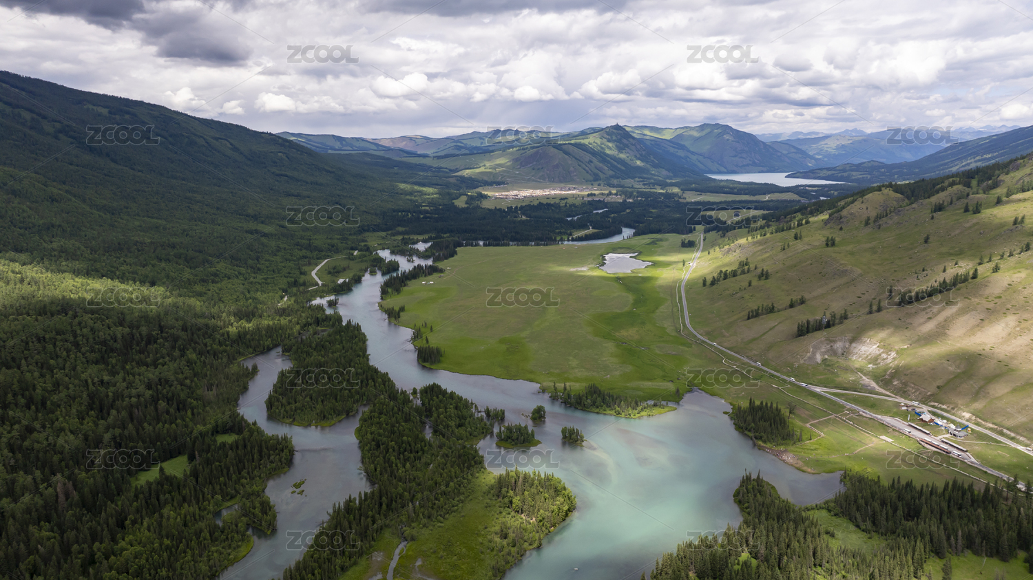 夏天,风景,航拍视角,新疆维吾尔自治区,阿勒泰,无人,户外,高视角,旅行,绿色