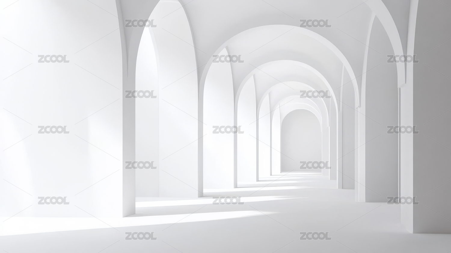白色拱廊通道的极简主义视角