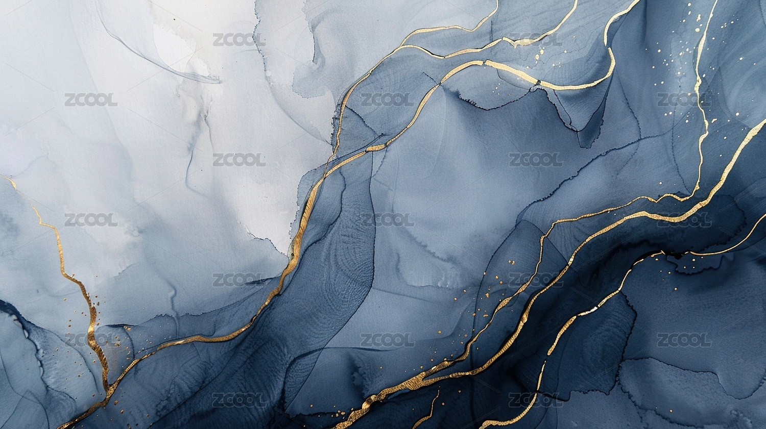 蓝色金箔渐变水墨肌理